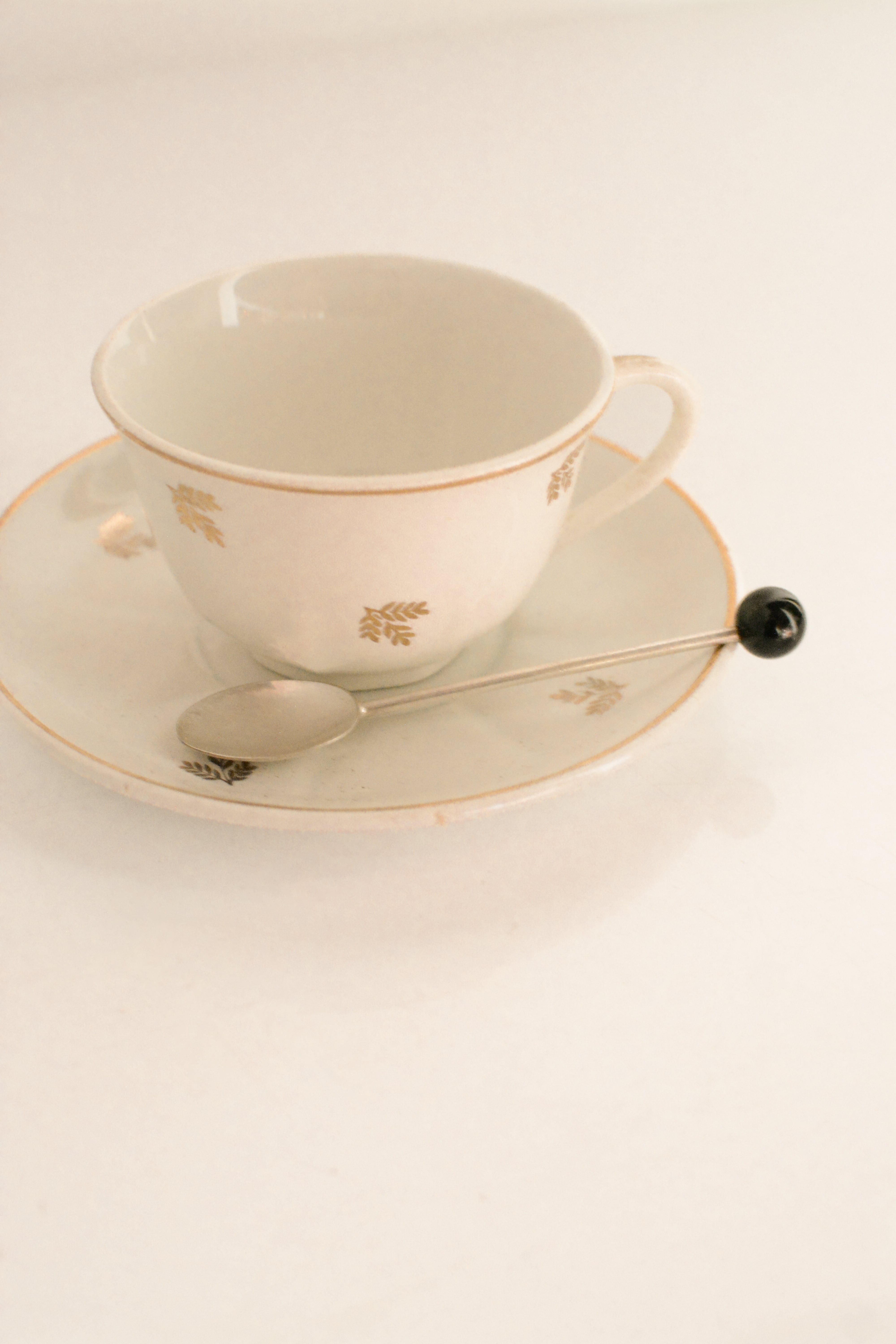 控えめな金彩と、小さな葉のモチーフ。綺麗な丸ではないふちのわずかな歪みや、釉薬のゆらぎ、自然のリズムをなぞるように、ひとつひとつ少しずつ表情が違います。古い物ならではの個性が感じられるお品です。小傷や窯傷等ございますが、アンティークとしては比較的綺麗なお品です。