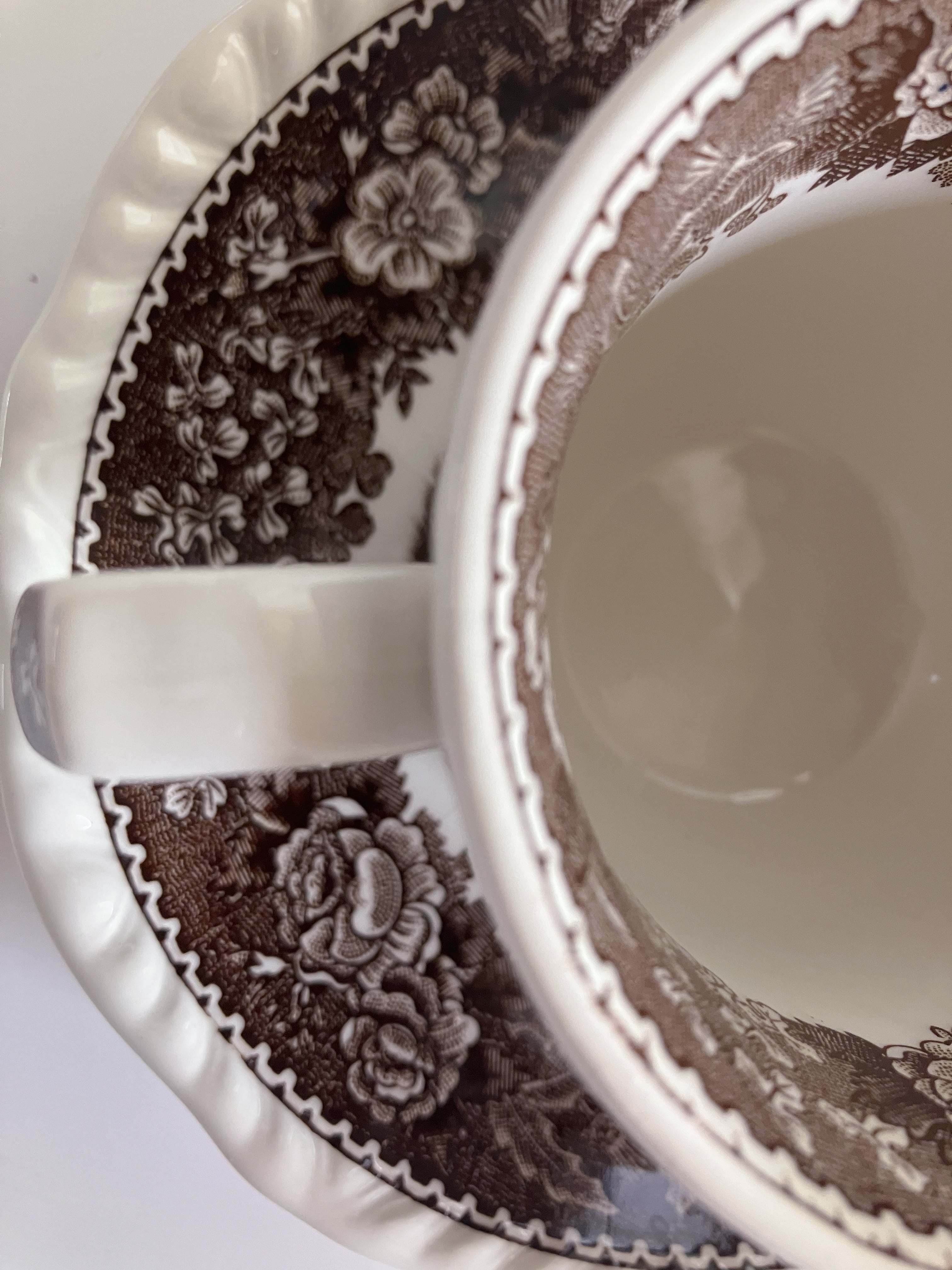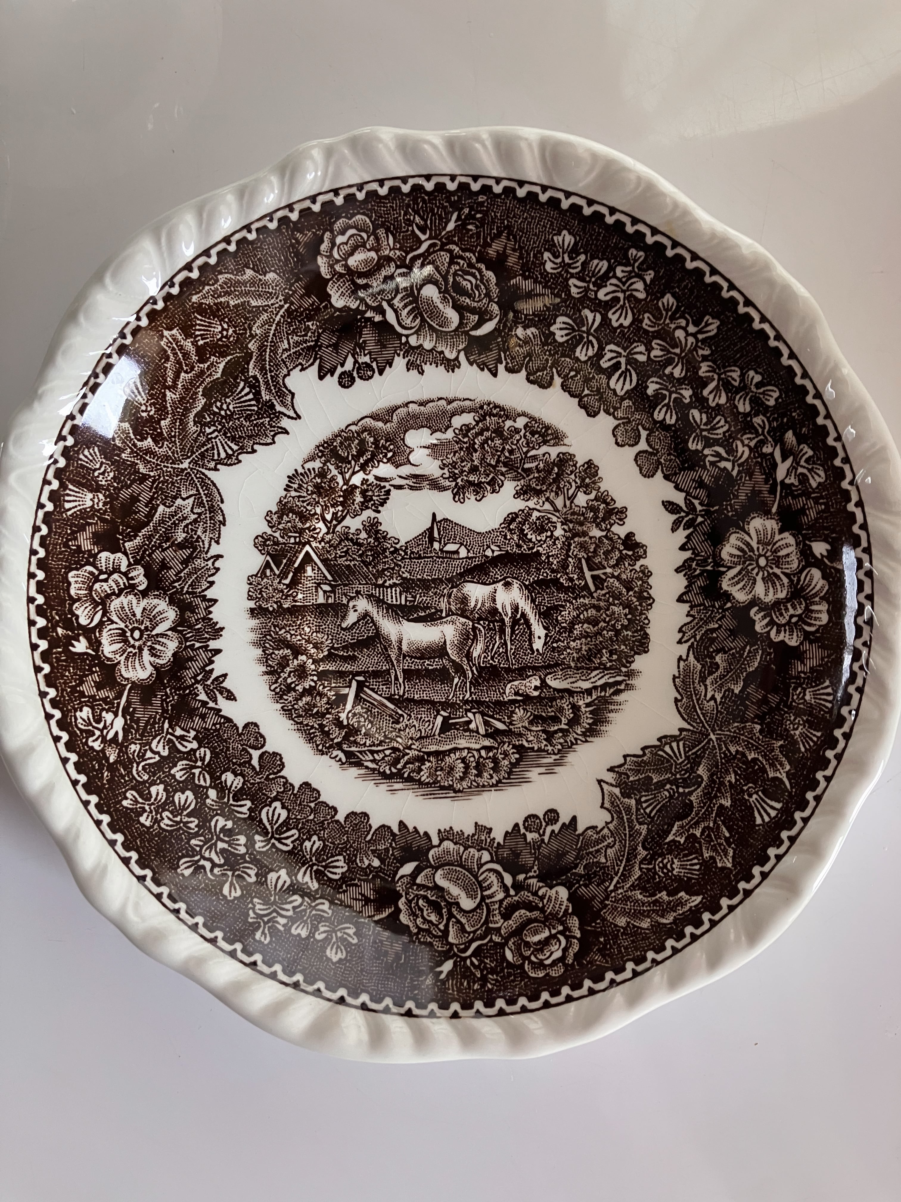のどかな牧場、広がる自然、まるで絵画のように繊細に描かれたイギリスADAMS社のヴィンテージカップ&ソーサー。お馬さんも可愛らしくて和みます。ハンドルやソーサーの縁にまで丁寧にあしらわれた装飾が、全体の調和を生み、どの角度から見ても楽しめるデザイン、物語のようなティータイムをお楽しみください。今の季節はアイスクリームやアフォガードなども良いですね。小傷等ございますが、ヴィンテージとしては比較的綺麗な状態です。複数在庫ございますが、ほとんど差異はございませんのでセレクトしてのお届けとなります。