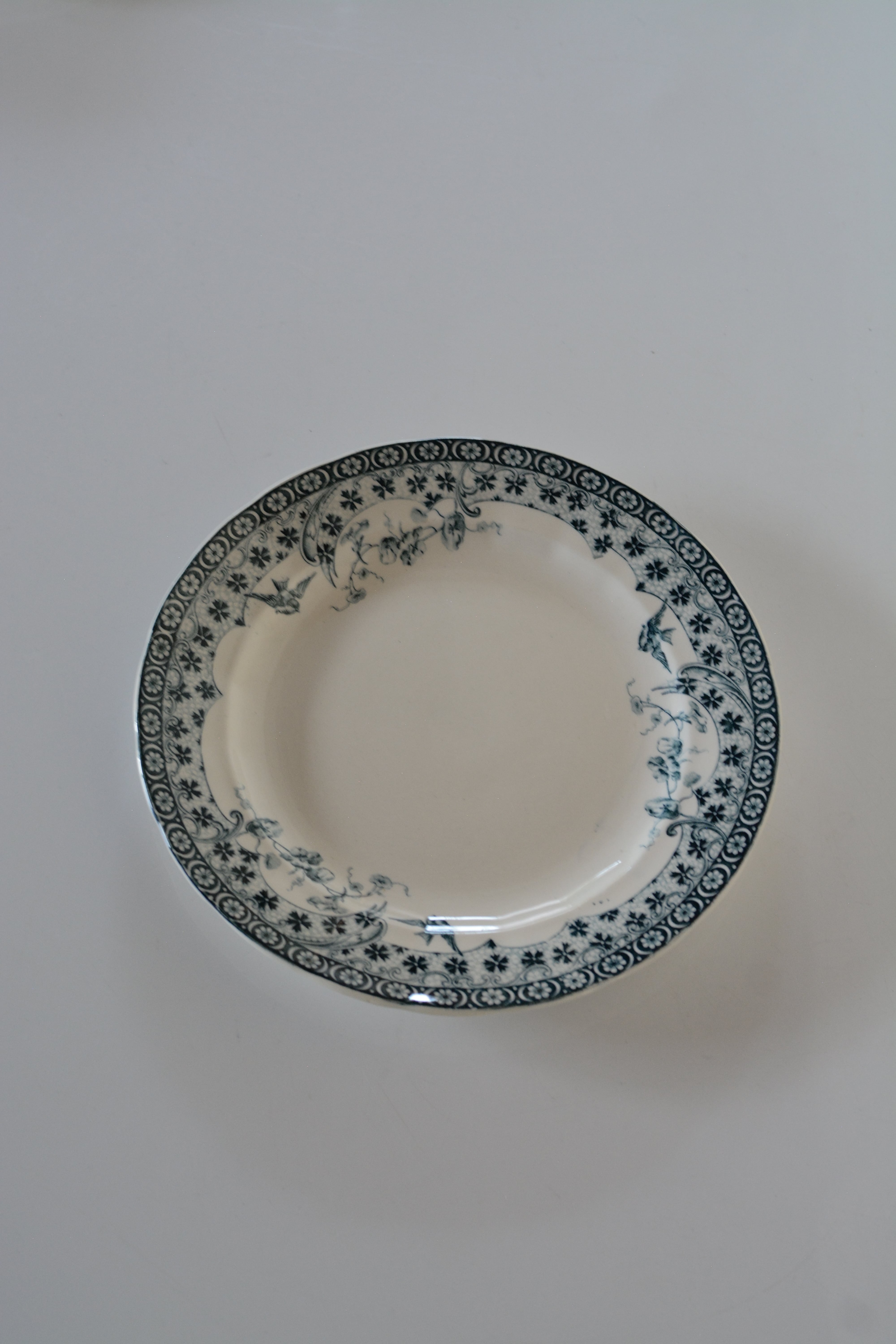 フランス、ショワジー=ル=ロワのアンティーク皿「antique plate Choisy-le-Roi 1212」。時を超えた美しさが漂うこの一枚は、優雅なデザインと色合いが特徴です。装飾は繊細で、日常の食卓を特別な空間に演出します。お皿の周りには繊細な模様が施されており、その趣はまさにアンティークならではの魅力です。