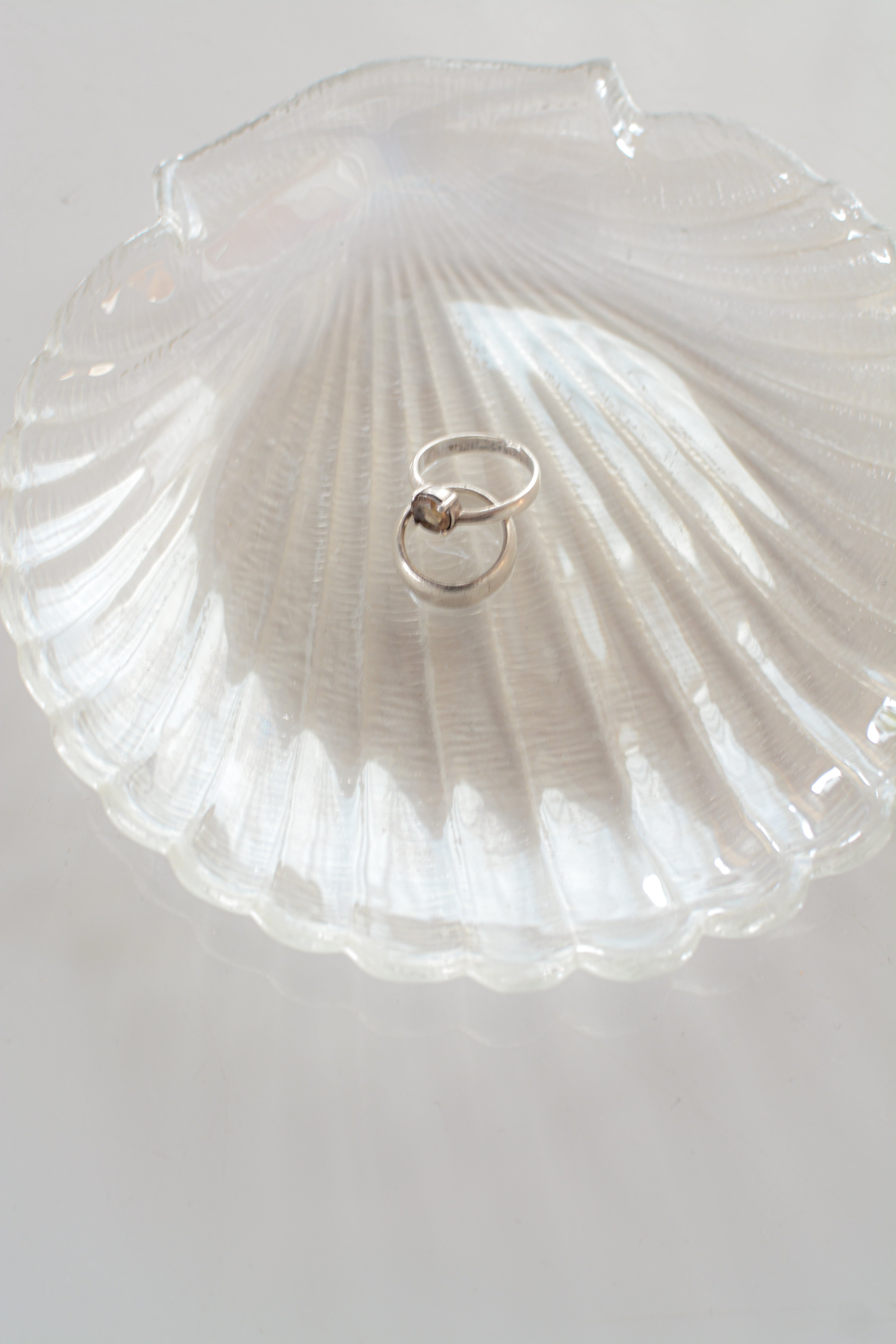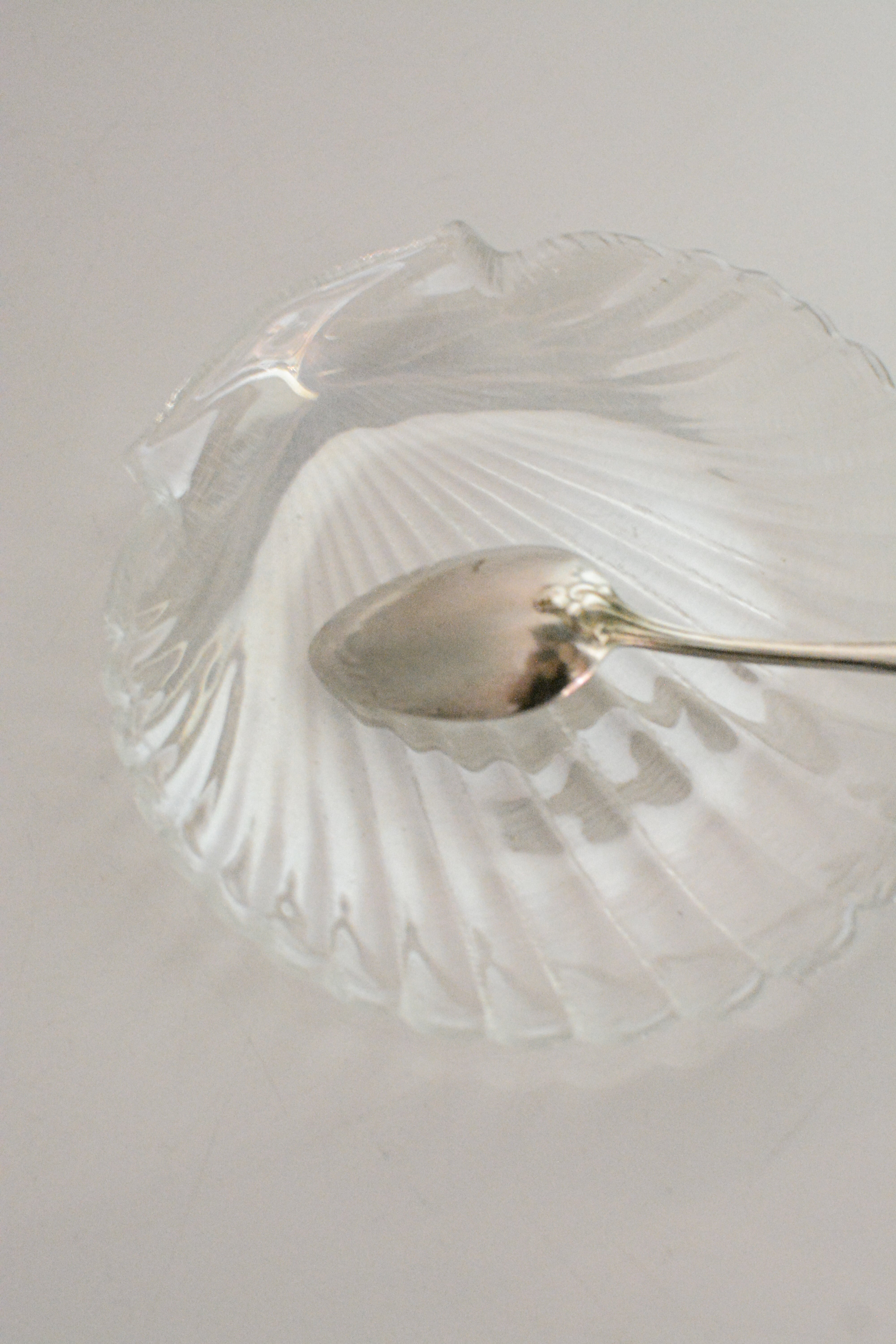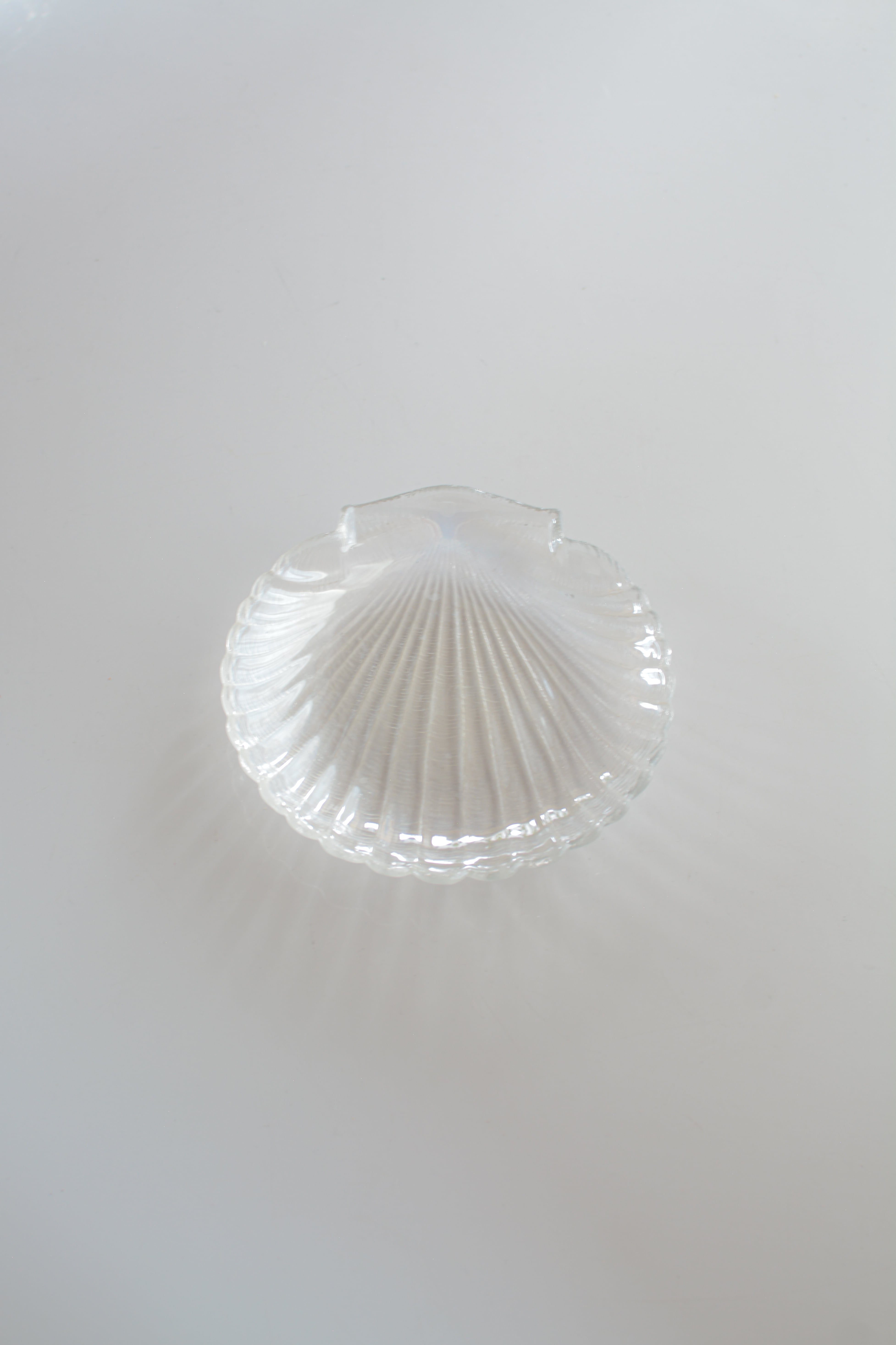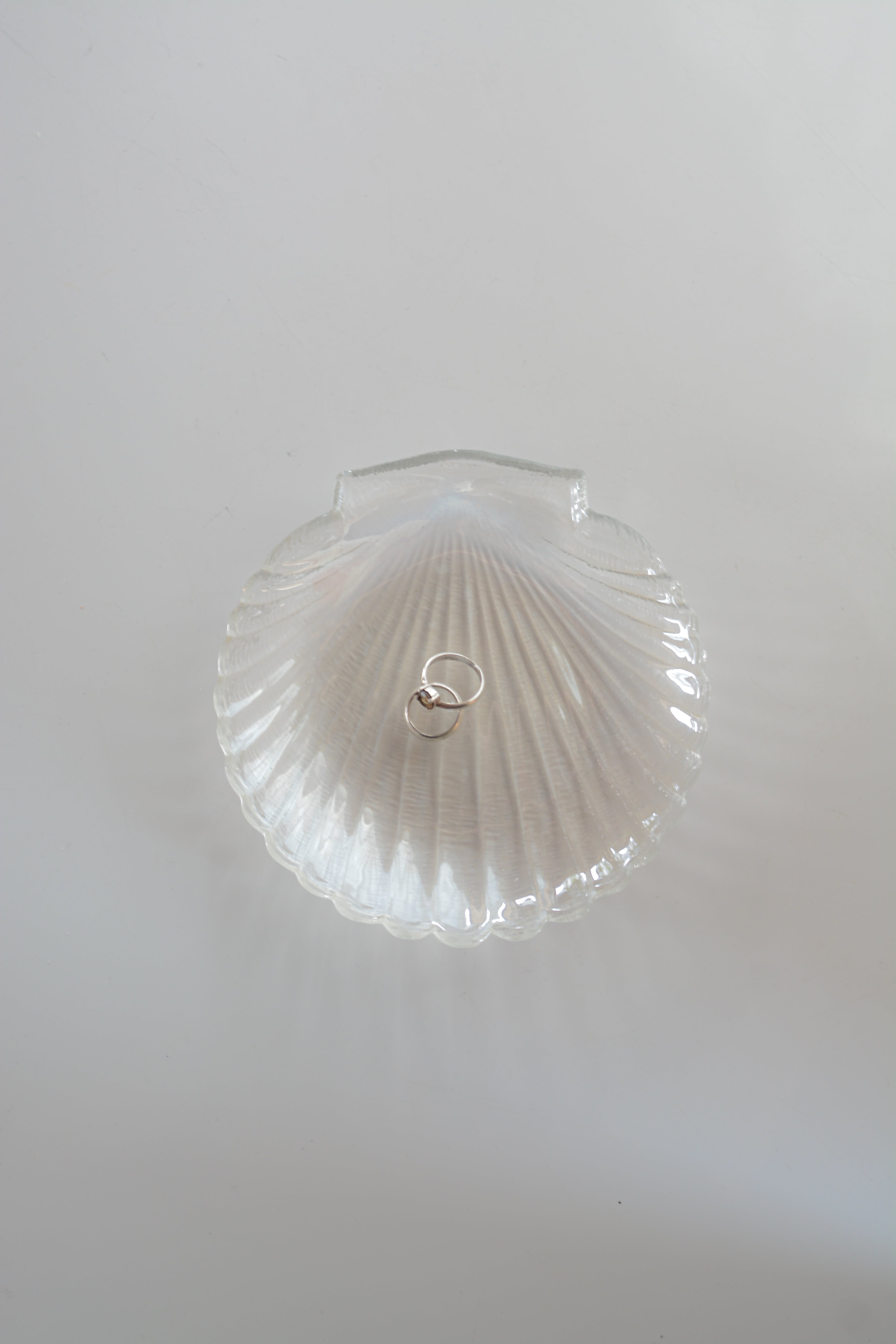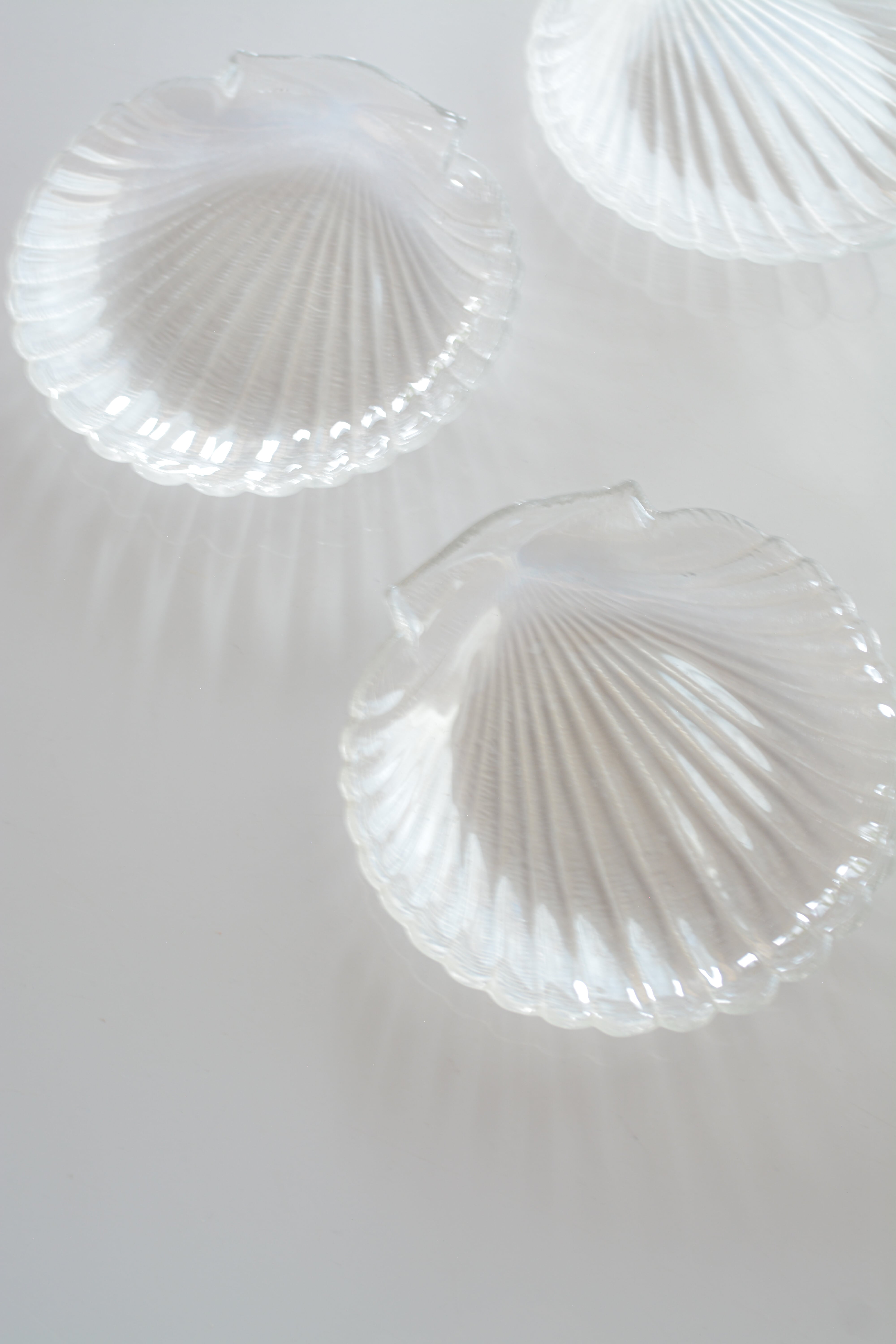 フランスヴィンテージのシェルプレート。貝殻をモチーフにした繊細なフォルムが、光を受けてやわらかく反射し、明るいニュアンスはこれからの季節にピッタリですね。アクセサリートレイやキャンドルプレートとしても美しく映えます。小傷等ございますがヴィンテージとしては比較的綺麗な状態です。複数在庫ございますが、ほぼ差異はございませんのでセレクトしてのお届けとなります。