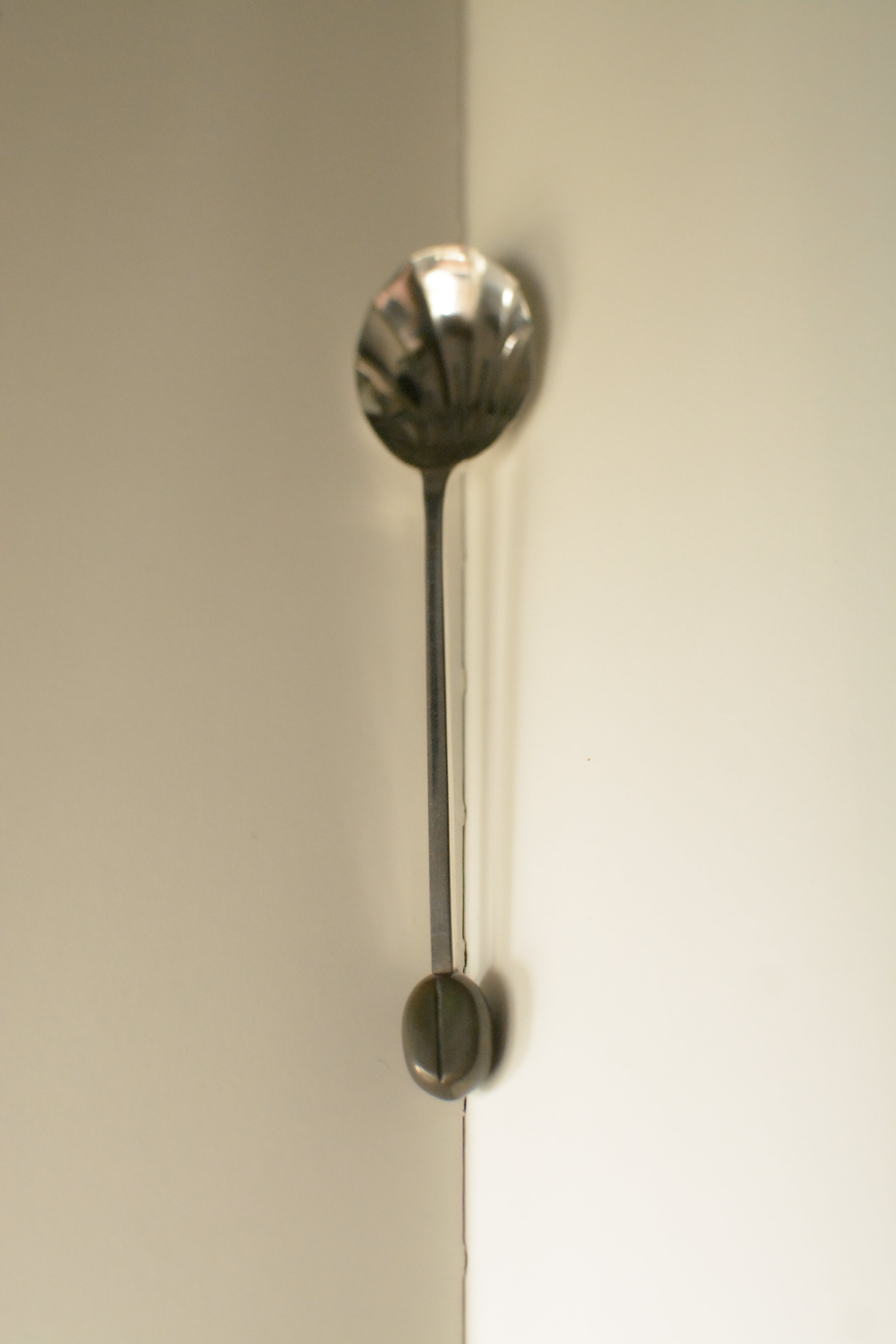 1930年代頃のアールデコスタイルが感じられるシルバープレートのコーヒースプーン。コーヒービーンをモチーフにした愛らしさ、アールデコらしいシャープな造形と小さな豆の丸みの対比がなんともチャーミングです。こちらの個体のハンドルの先のコーヒービーン部分は、経年により深いブラウンからオリーブグリーンへと変化した個体で、それぞれに異なる表情を見せてくれます。