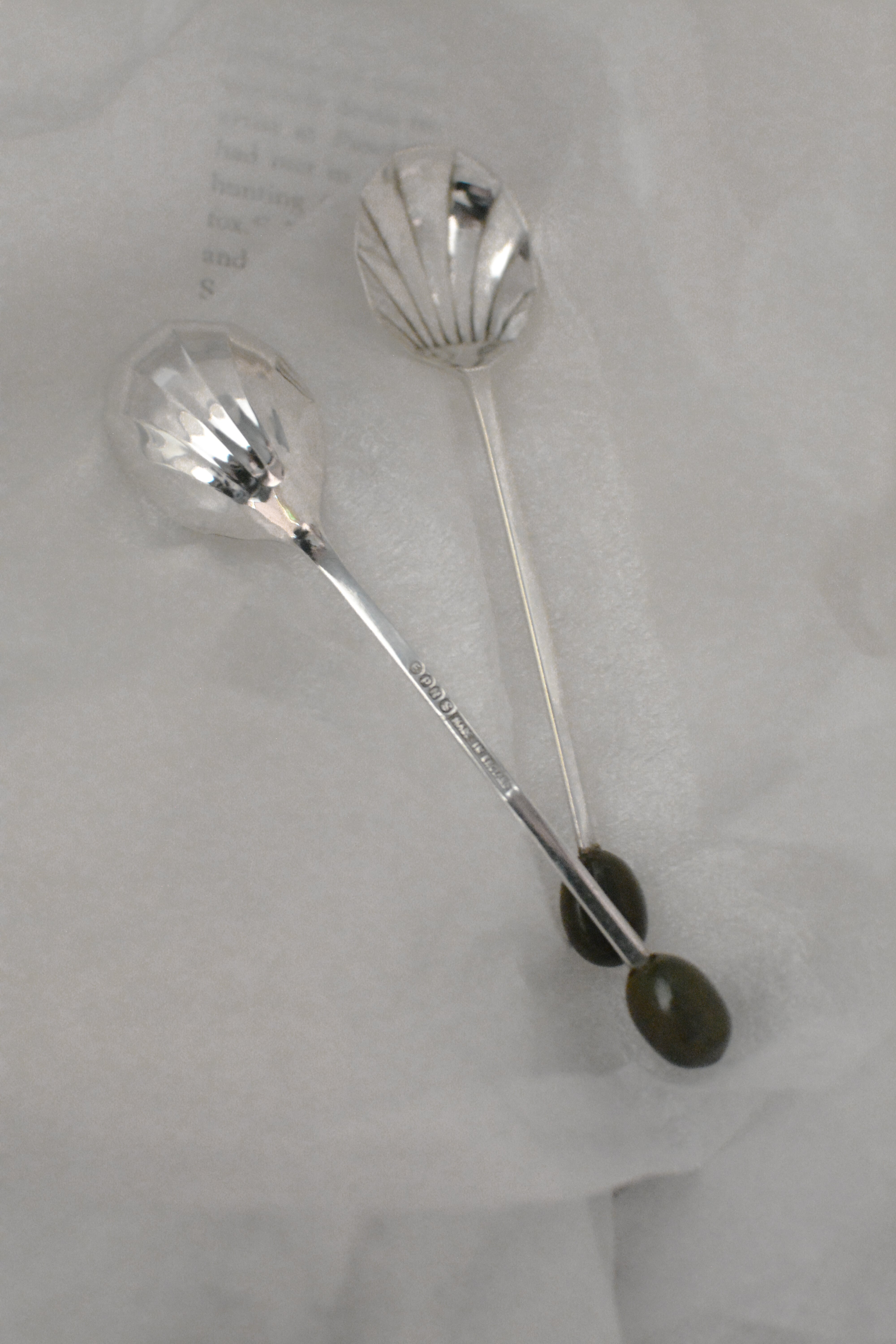まるで年月を経て育まれた豆のように、一つひとつが少しずつ違う佇まい。ボウル部分は角のあるスキャロップシェイプで光を受けるとやわらかな反射を生み出し、どの角度から見ても美しい仕立てです。EPNS Made in England の刻印がございます。カフェタイムを小さなアートのように彩るヴィンテージピースです。複数在庫ございますのでセレクトしてのお届けとなります。他の商品と合わせて購入される際は送料が重複する可能性がございますが、訂正させていただきますのでお申し付け下さい。