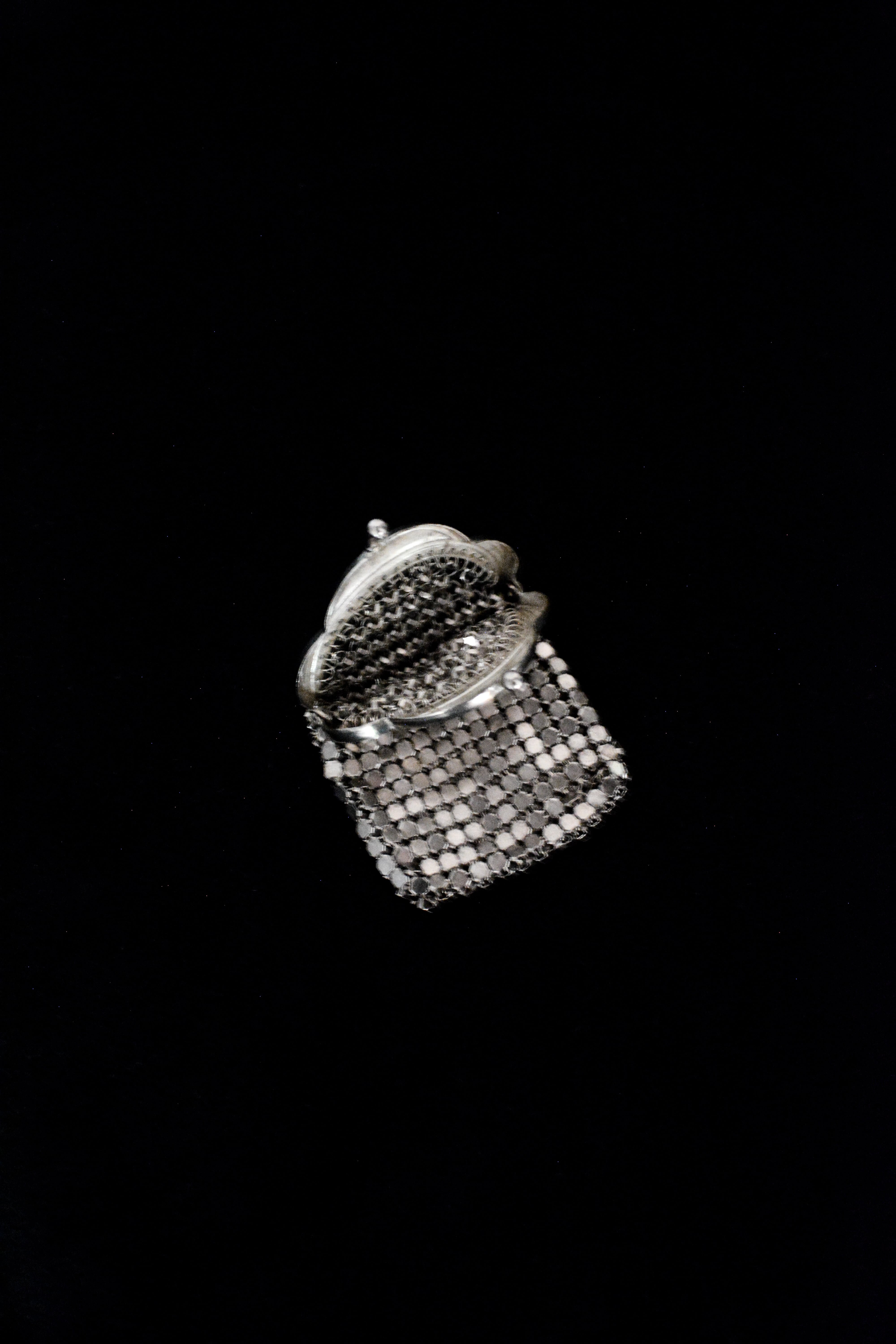 細やかな金属の網目が連なり、光を受けて静かにきらめく、ヴィンテージのメッシュコインケース。1900年代前半に流行したメタルメッシュの小物は、かつて女性たちの手元を飾った古き良き時代のアクセサリーだそう。時を経た金属の艶やわずかなくすみも、このパースが歩んできた時間を物語っていますね。バッグに忍ばせて持ち歩いたり、鏡台の上に置いてジュエリーボックスのように楽しんだり。飾るだけでも空間を華やかにしてくれる存在感です。小傷等ございますがヴィンテージとしては比較的綺麗な状態です。