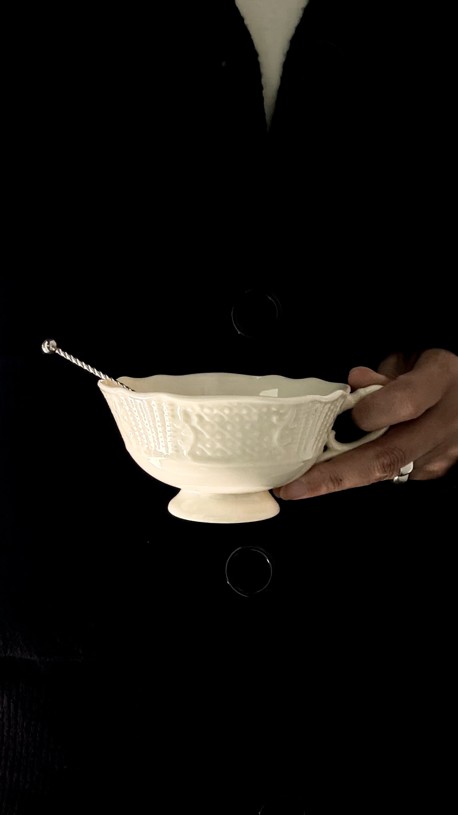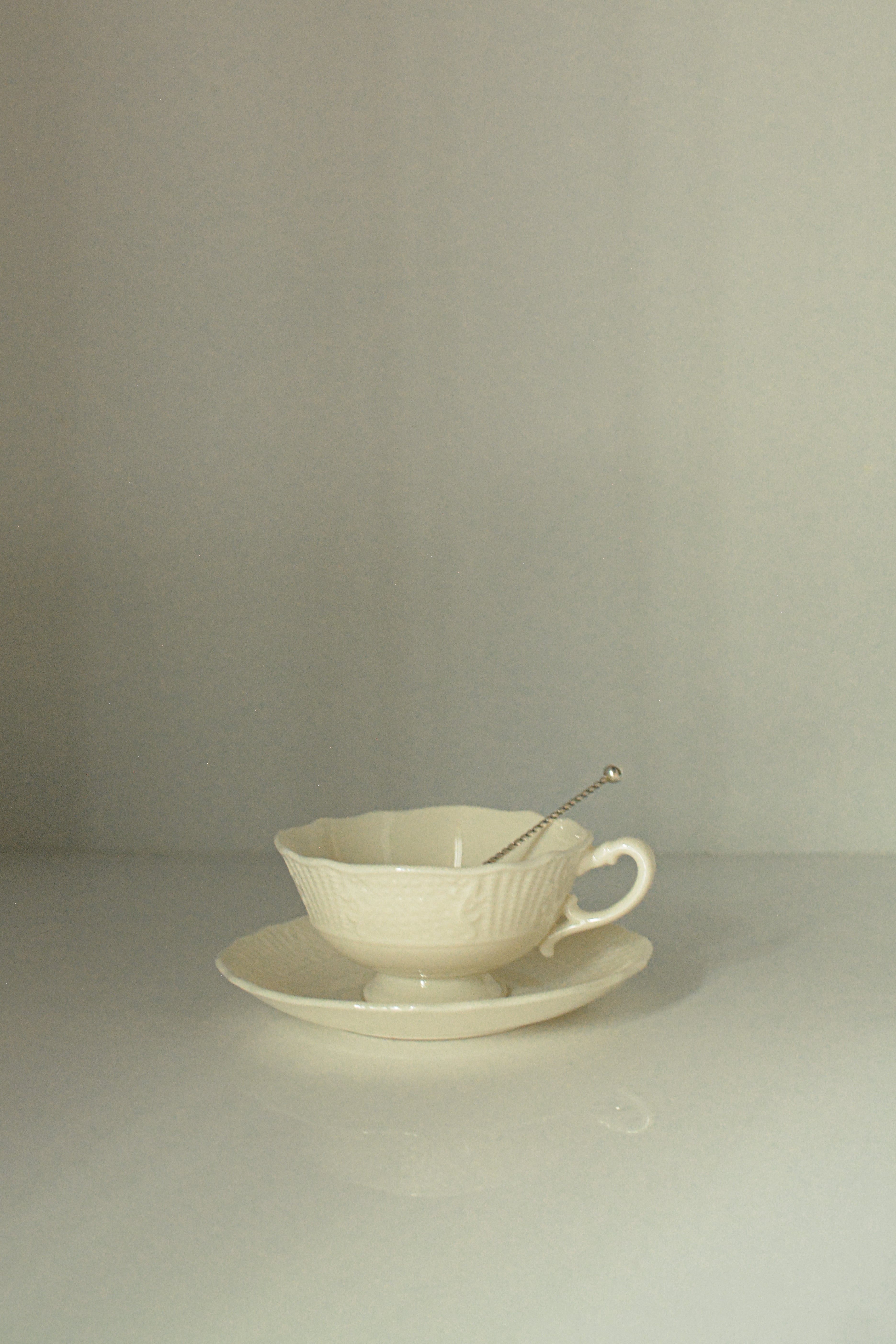 Lenoxのカップ&ソーサー。可憐さと上品さを合わせ持つフォルムは、眺めているだけでも心がほぐれるような佇まいです。こちらは初期レノックスの刻印が入ったヴィンテージで、いずれもとても良いコンディションを保っています。飾って眺めているだけでも絵になる美しい1客ですね。小傷等ございますがヴィンテージとしては比較的綺麗な状態です。複数在庫ございます、セレクトしてのお届けとなります。