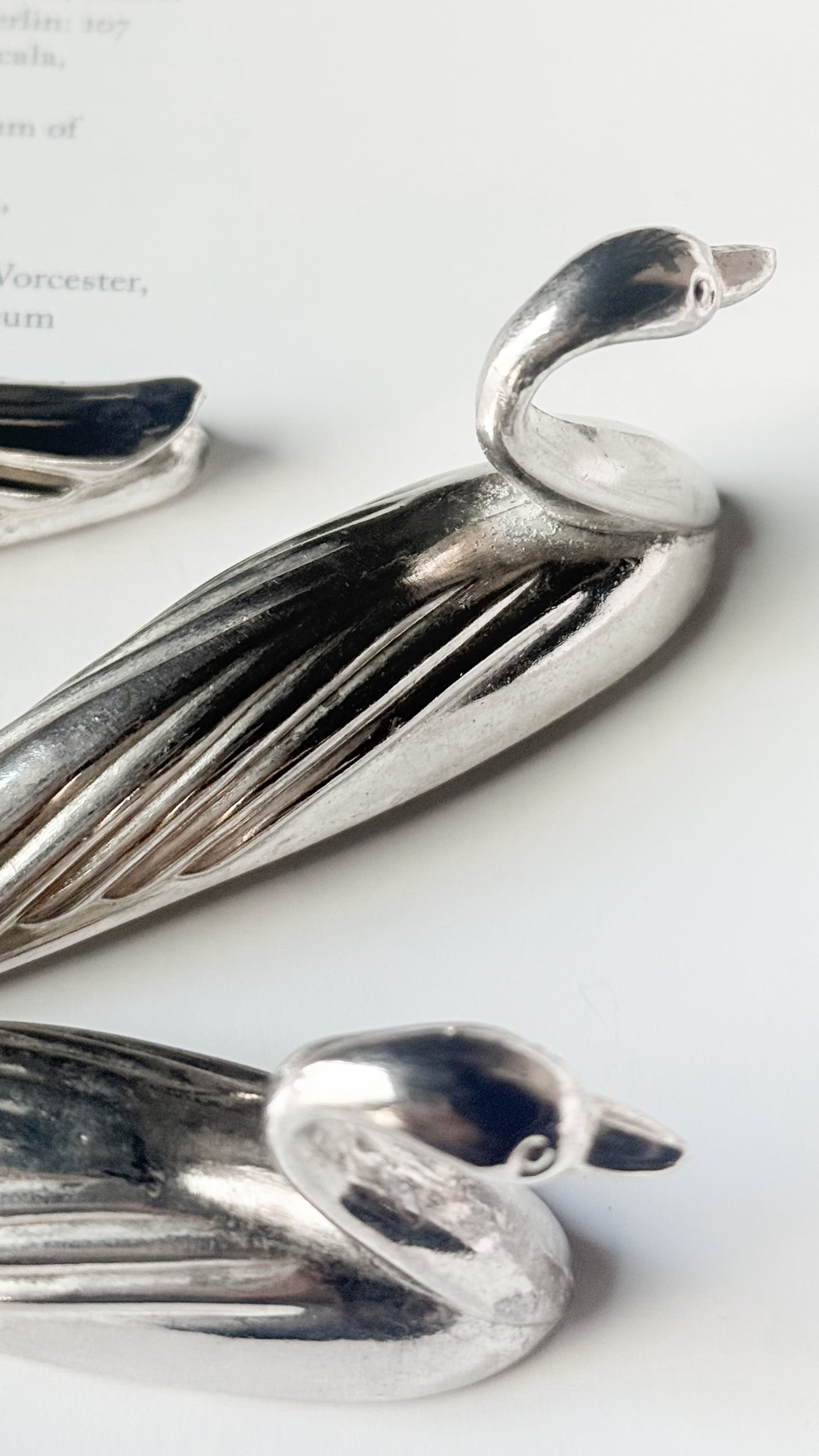 静かな湖面をすべるように、優雅に並ぶ白鳥たち。イギリスヴィンテージのカトラリーレスト。