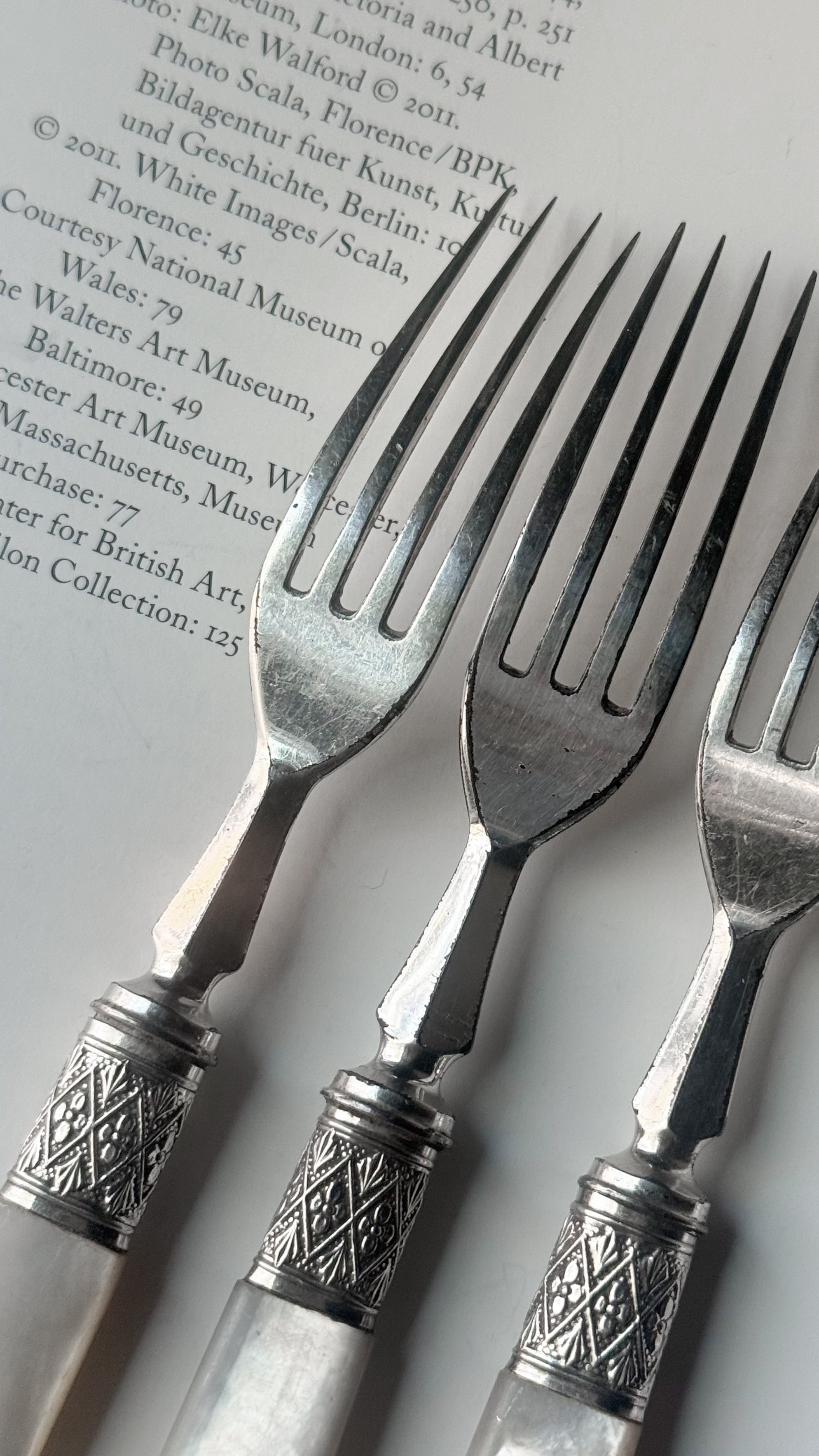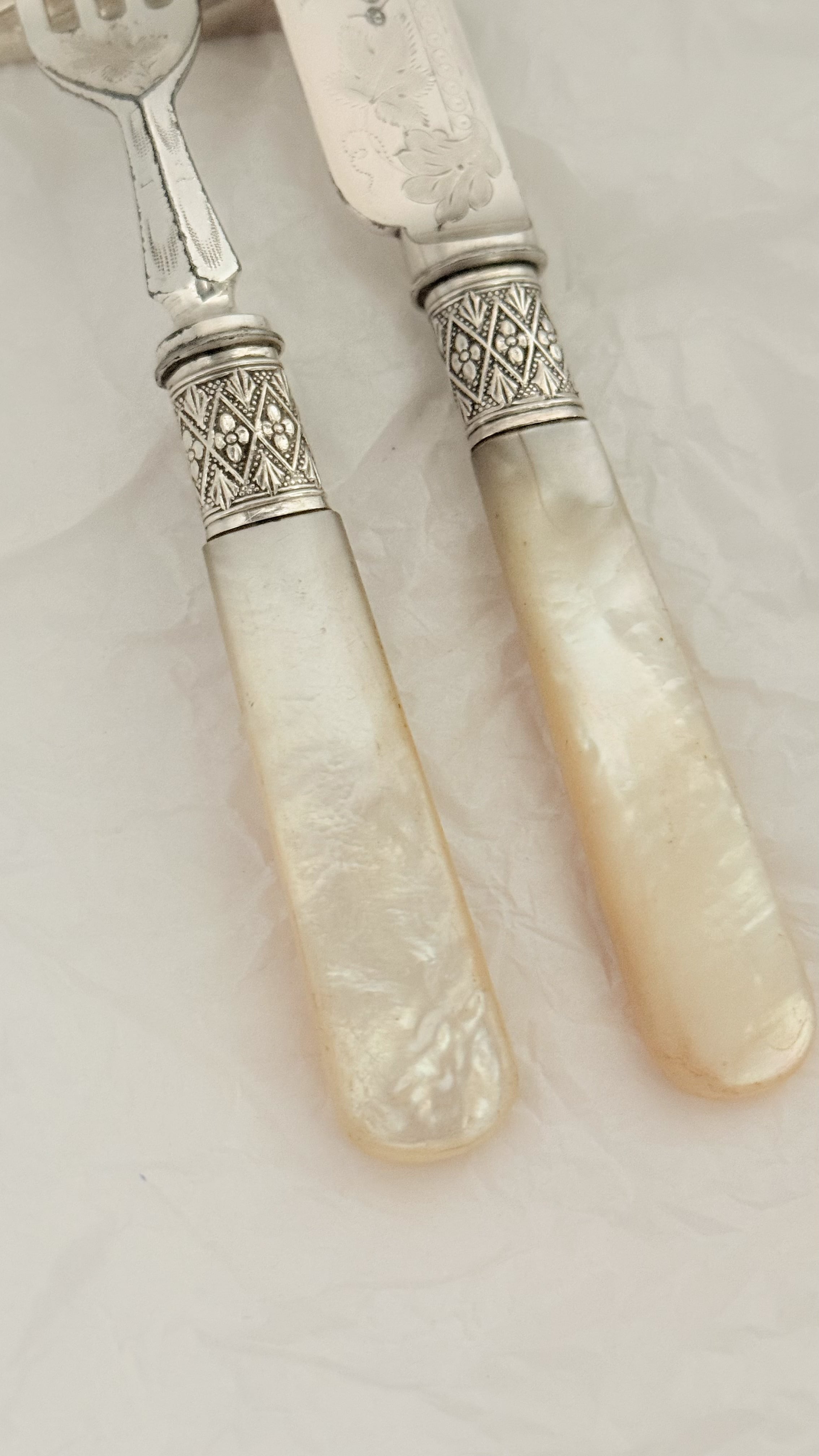 antique Mother of Pearl & Silver Plate Dessert Fork and Knife