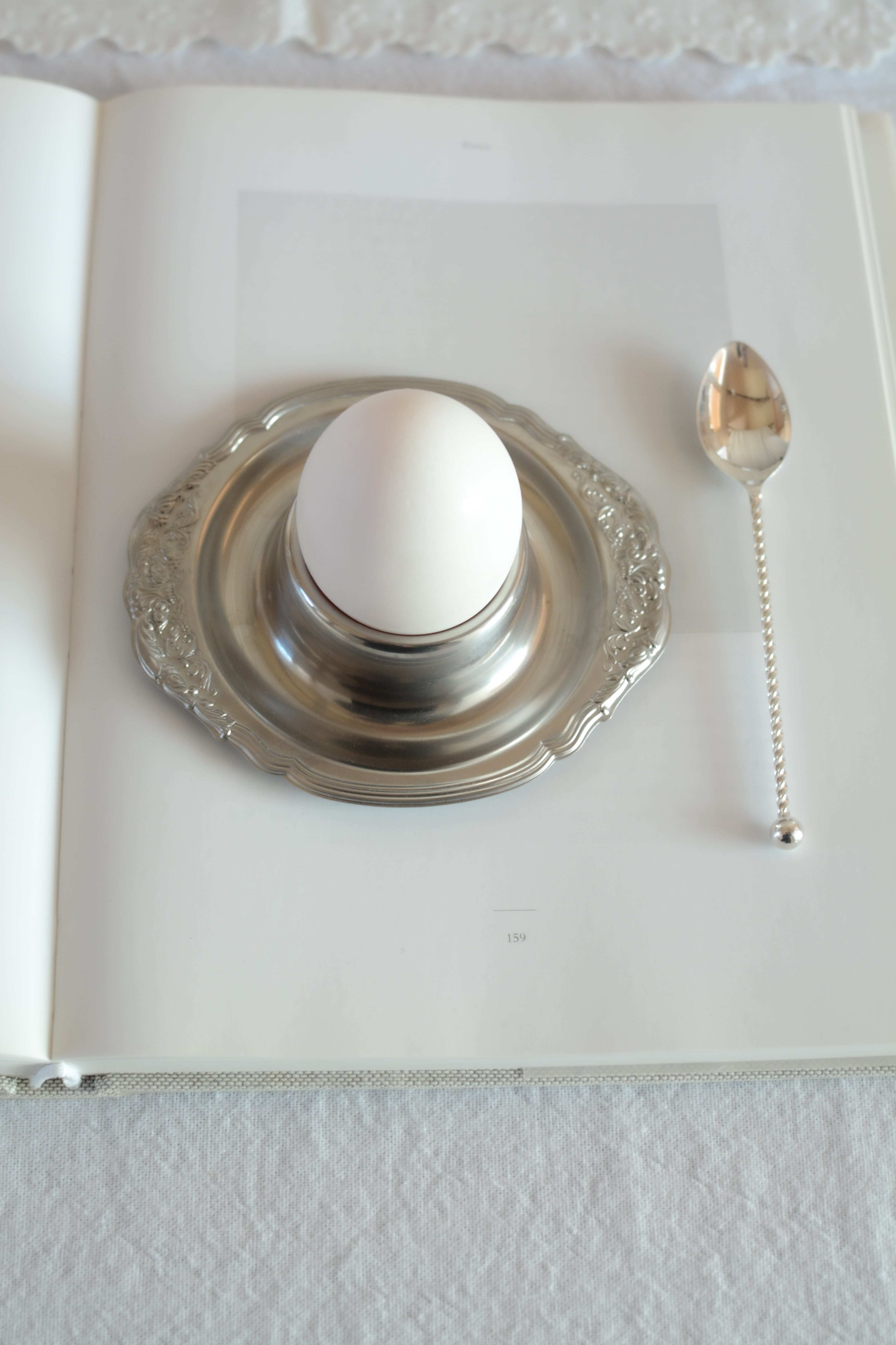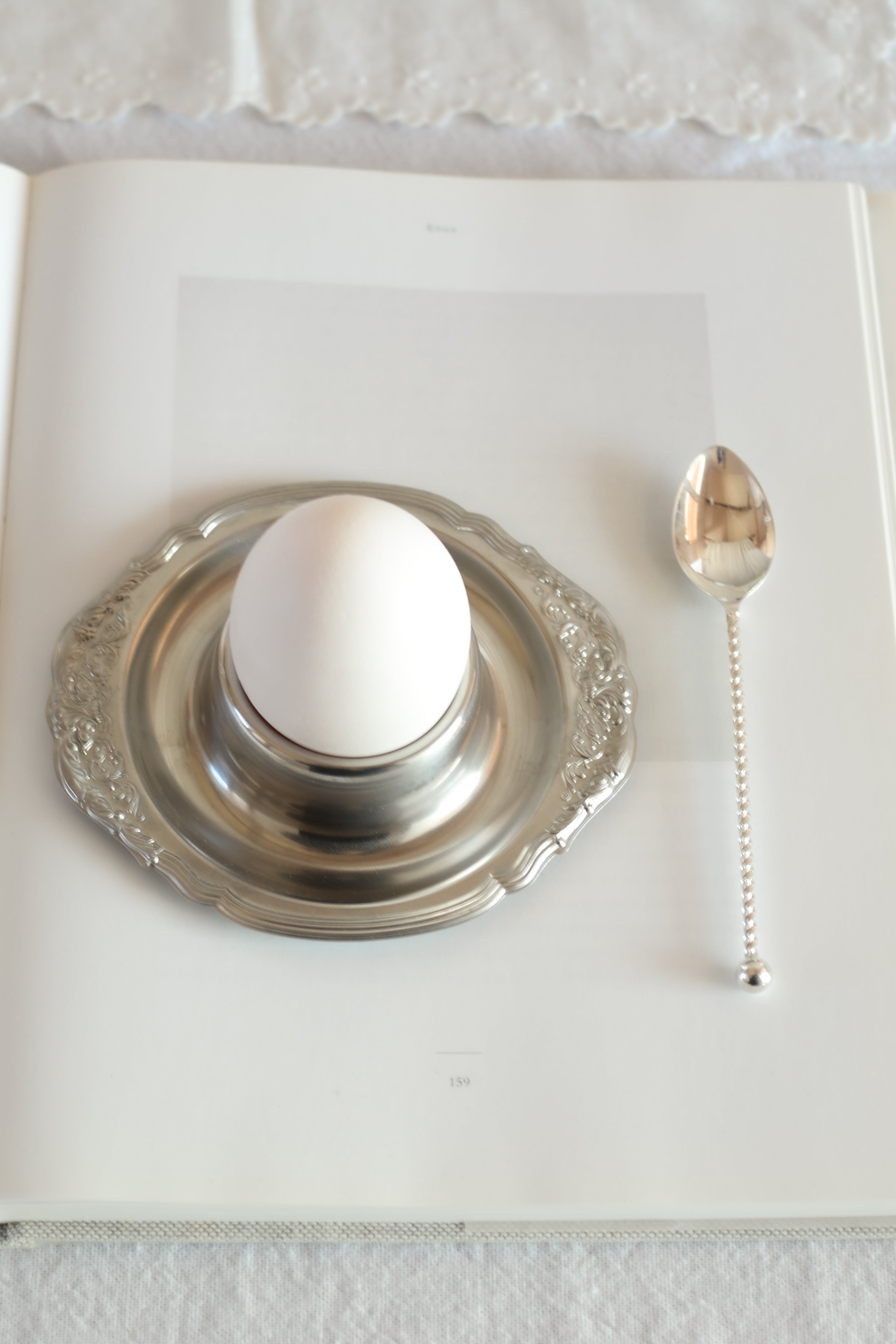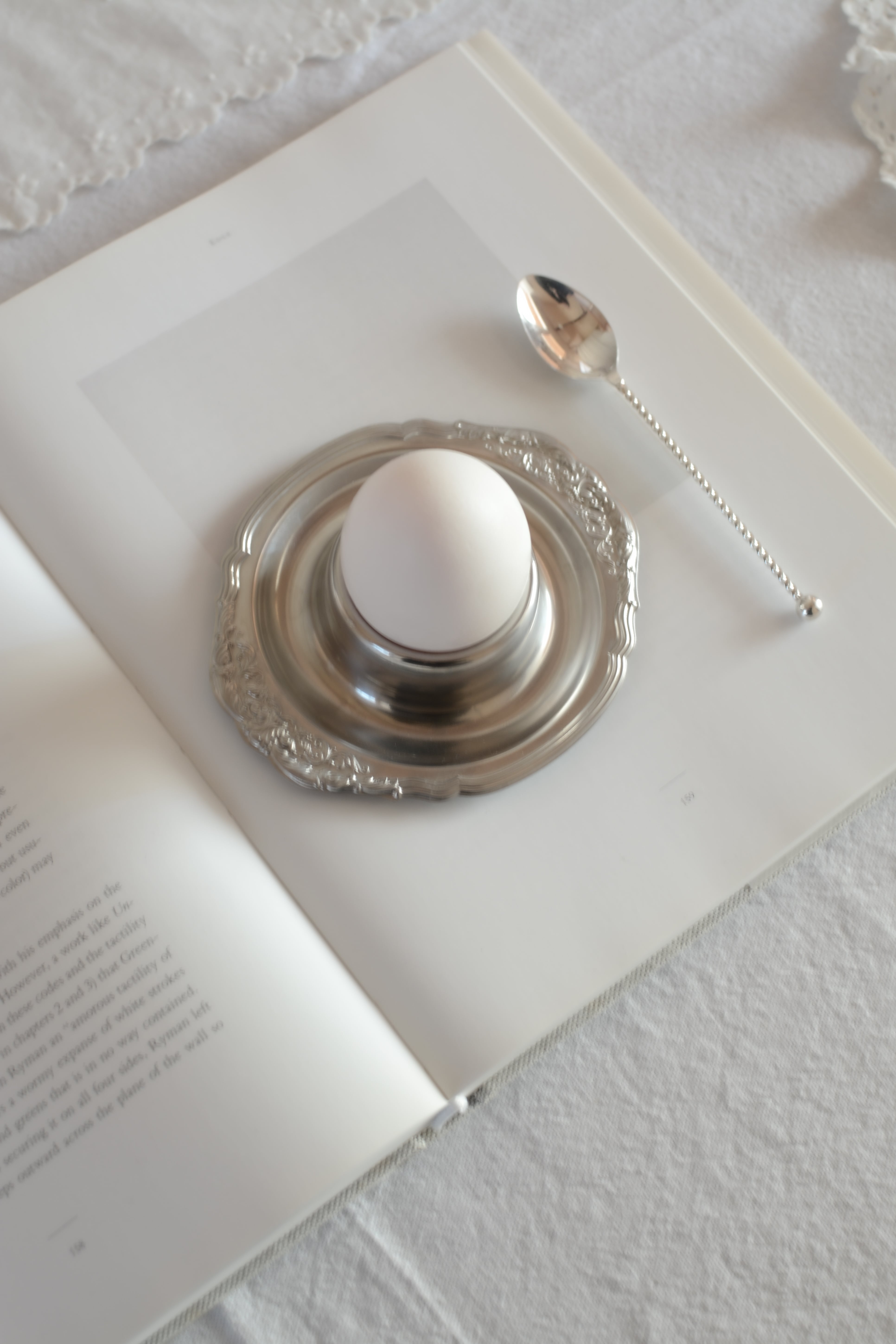 ちょっとした特別感を添えてくれるWMF のヴィンテージ・エッグスタンド。ドイツWMF によるヴィンテージアイテムで、素材はブランドを象徴するステンレススチール「Cromargan®」使い込むほどに、光沢がやや柔らかくなり、落ち着いた風合いに変化していく魅力をもつ素材です。時を経ても鈍く光るその質感は、シルバーのような上品さと、実用性を兼ね備えています。縁には繊細な装飾が施され、卵を置くだけでテーブルに特別な空気が。シンプルな器や白いクロスにも自然に溶け込み、静かな存在感を放つ一品です。ヴィンテージとしては比較的綺麗な状態です。ほとんど差異はございませんので、こちらでセレクトしてのお届けとなります。