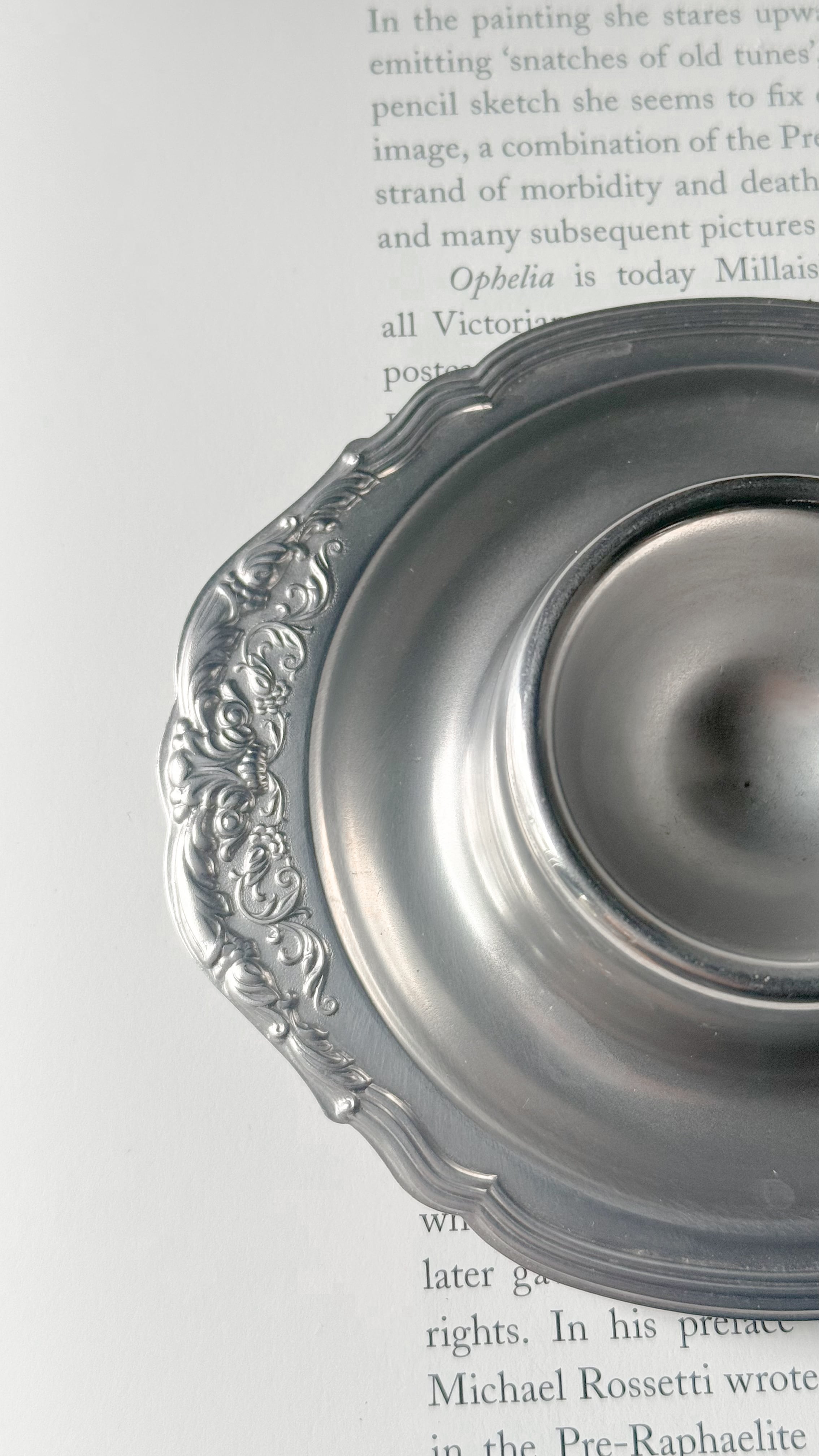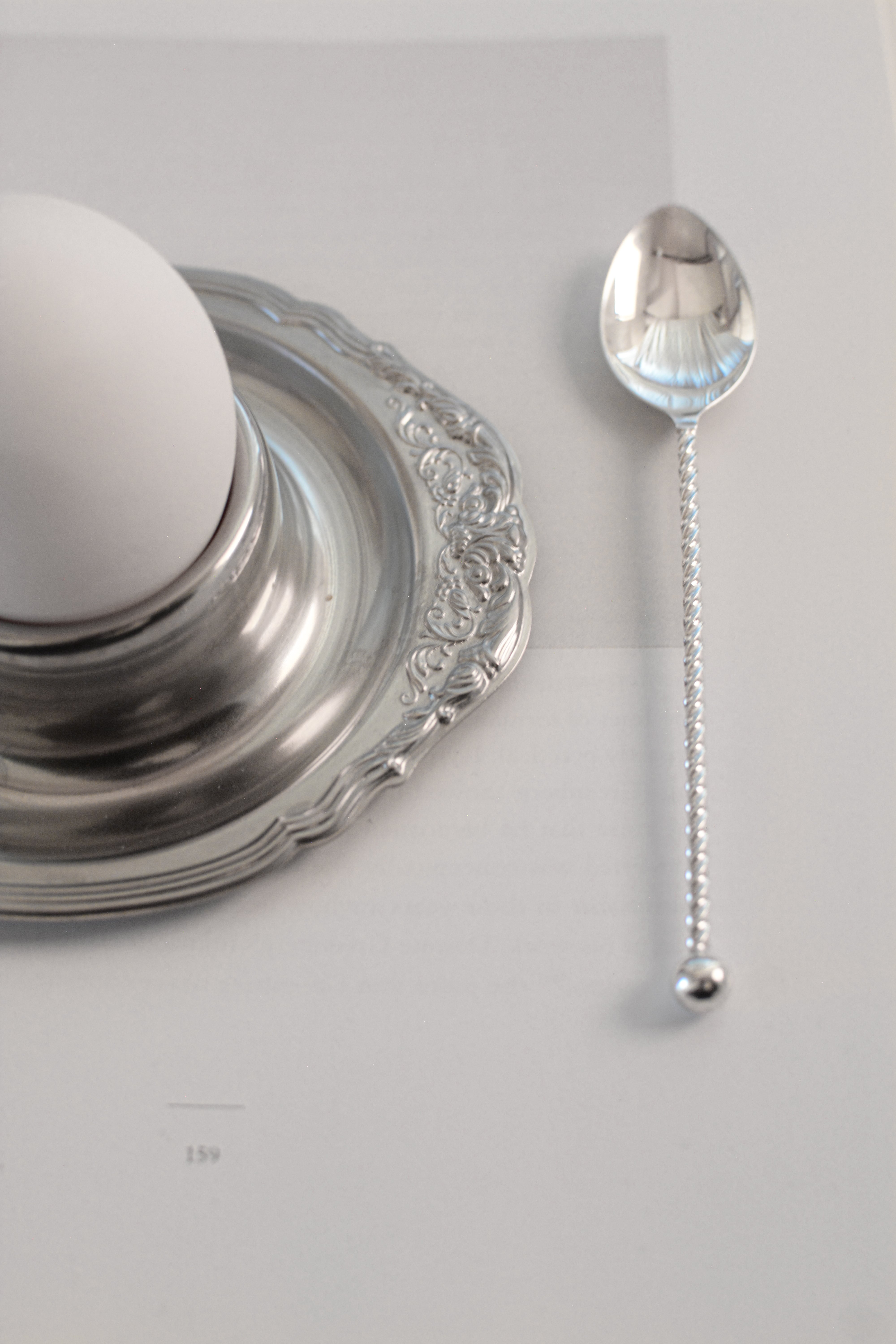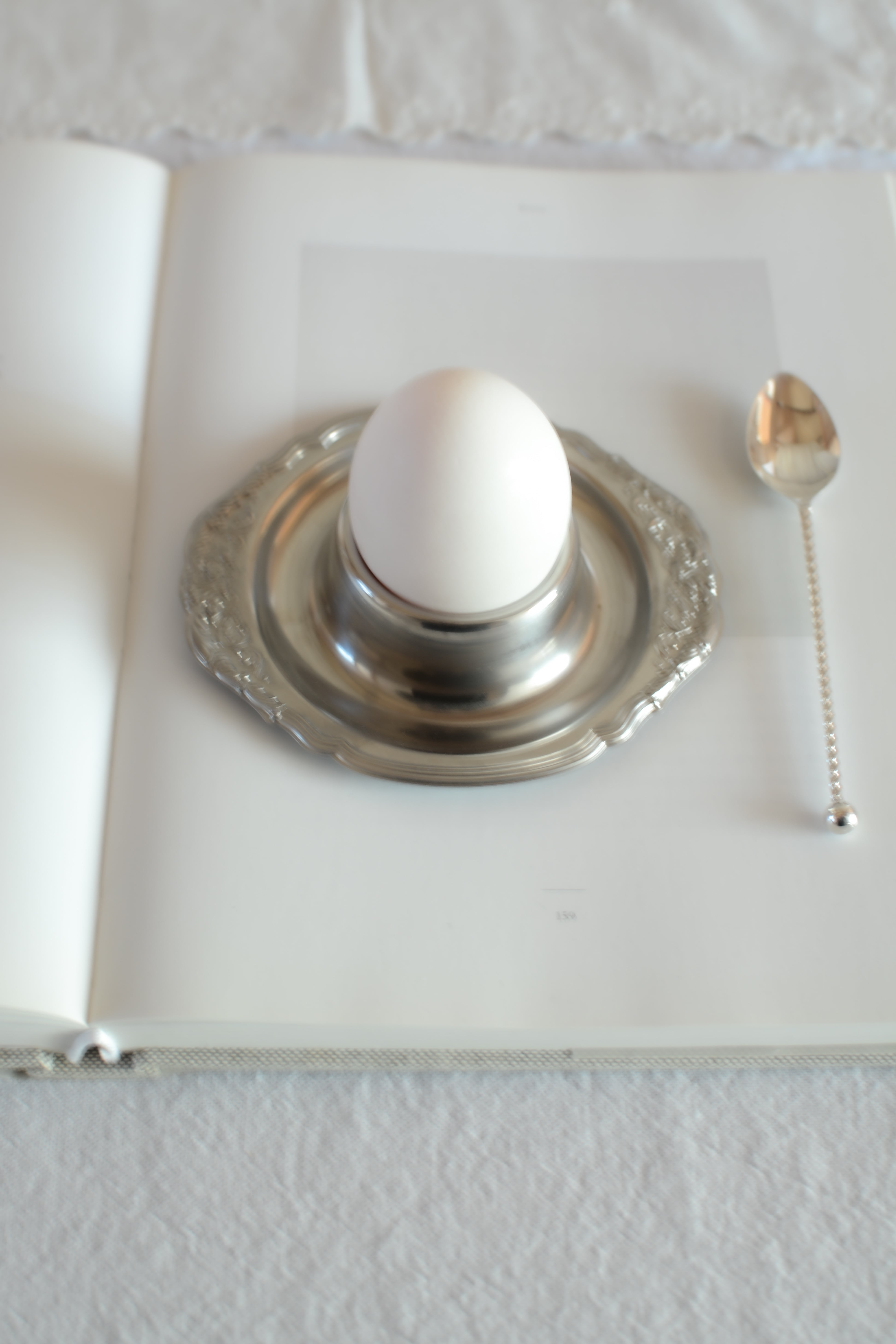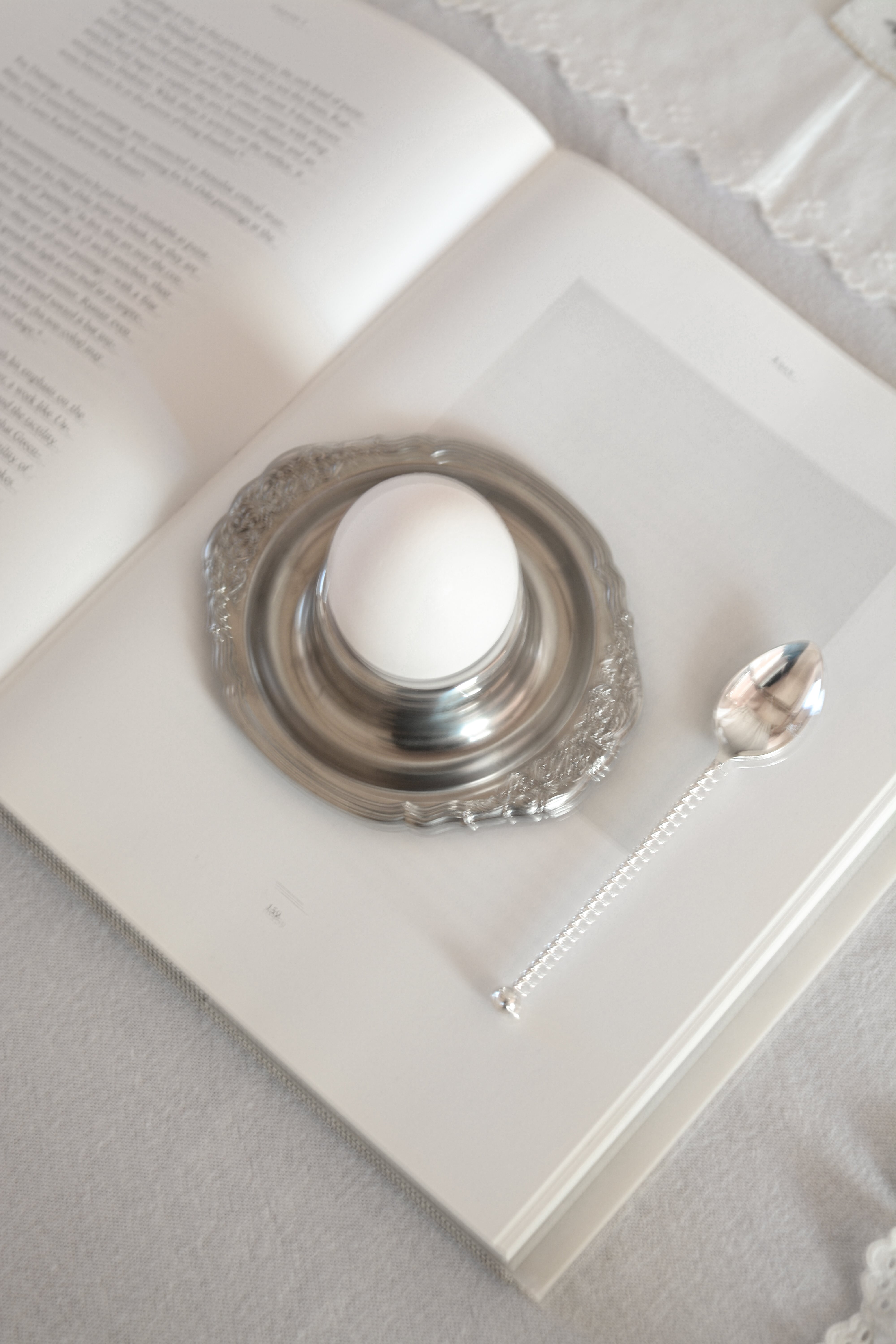 ちょっとした特別感を添えてくれるWMF のヴィンテージ・エッグスタンド。ドイツWMF によるヴィンテージアイテムで、素材はブランドを象徴するステンレススチール「Cromargan®」使い込むほどに、光沢がやや柔らかくなり、落ち着いた風合いに変化していく魅力をもつ素材です。時を経ても鈍く光るその質感は、シルバーのような上品さと、実用性を兼ね備えています。縁には繊細な装飾が施され、卵を置くだけでテーブルに特別な空気が。シンプルな器や白いクロスにも自然に溶け込み、静かな存在感を放つ一品です。ヴィンテージとしては比較的綺麗な状態です。ほとんど差異はございませんので、こちらでセレクトしてのお届けとなります。