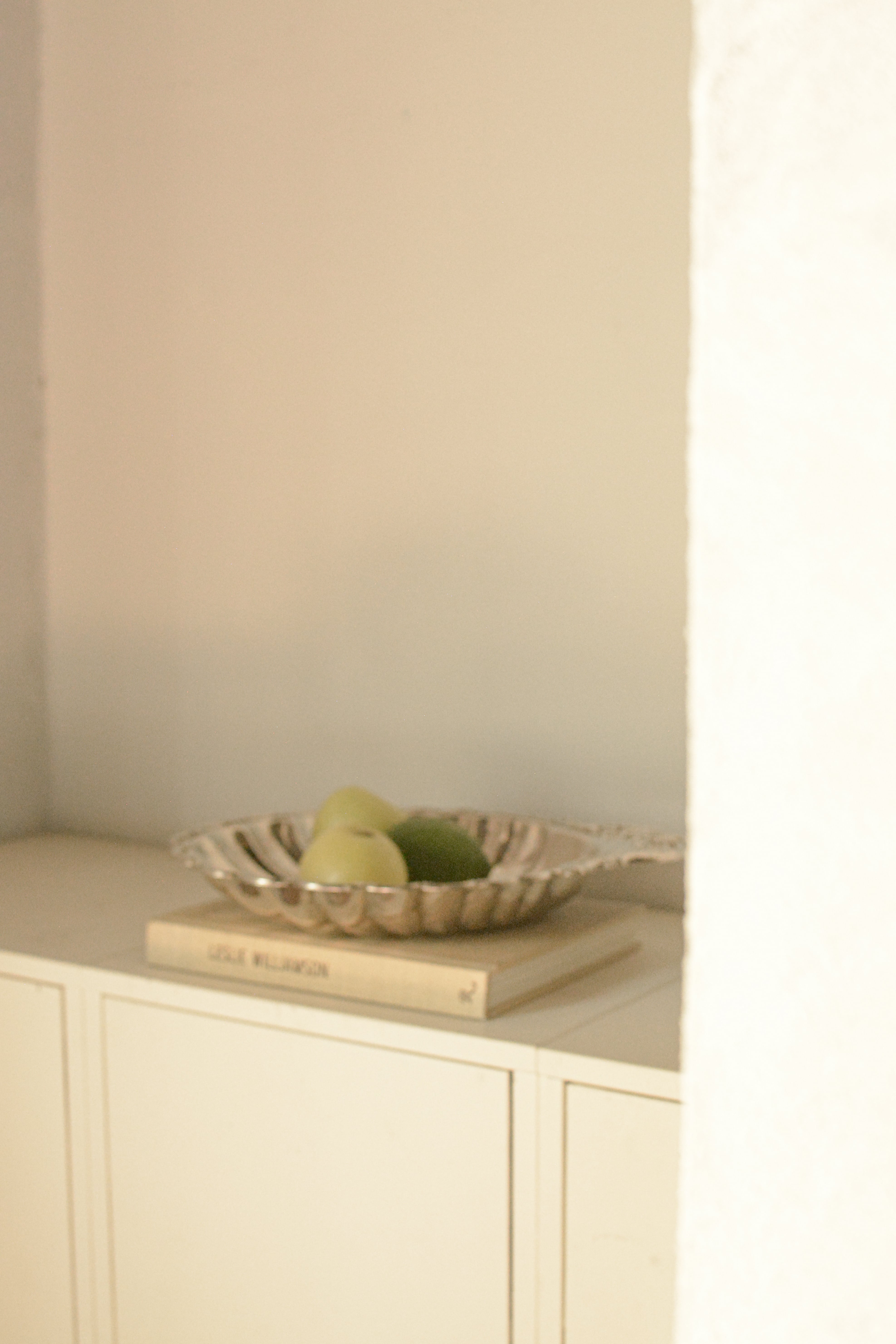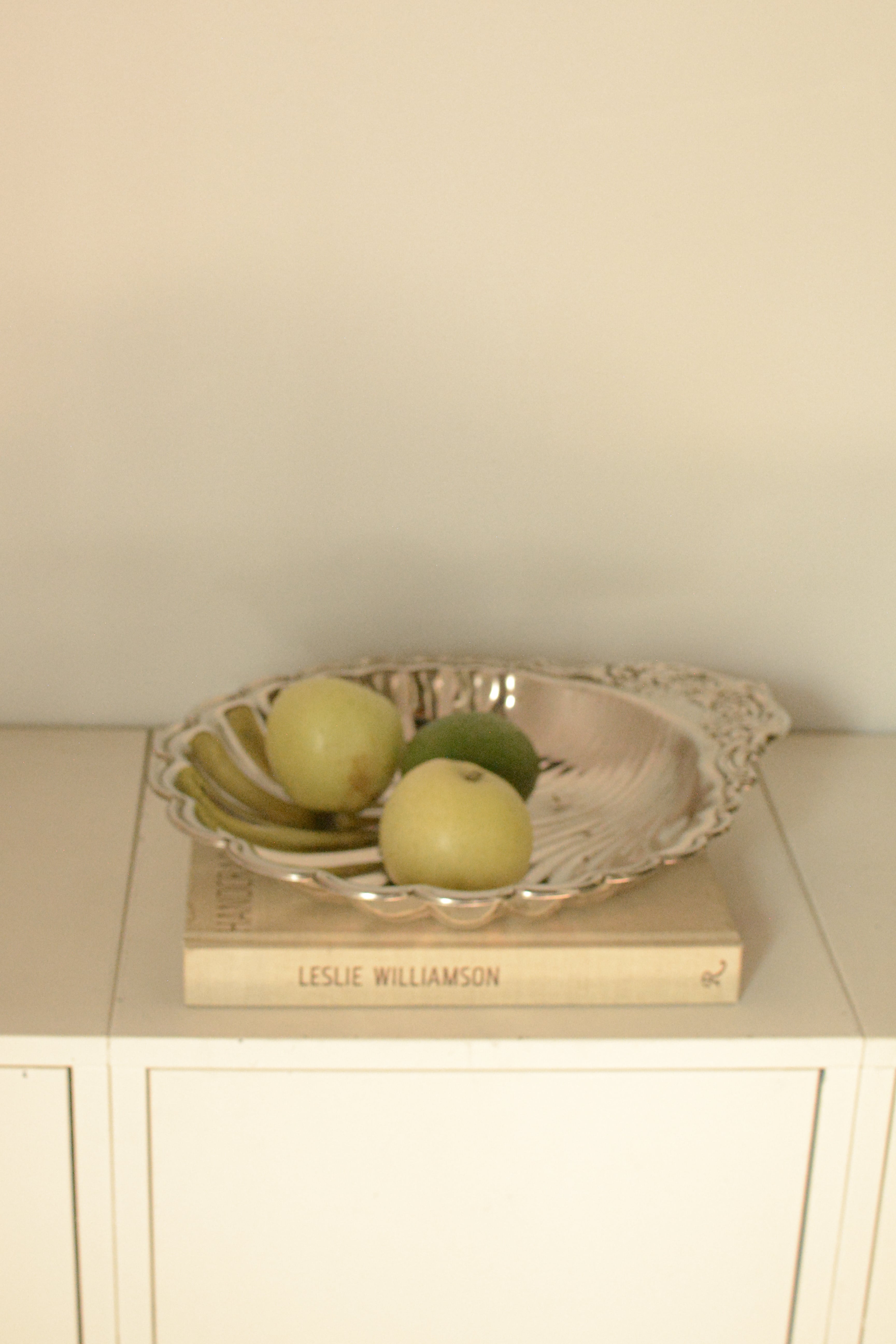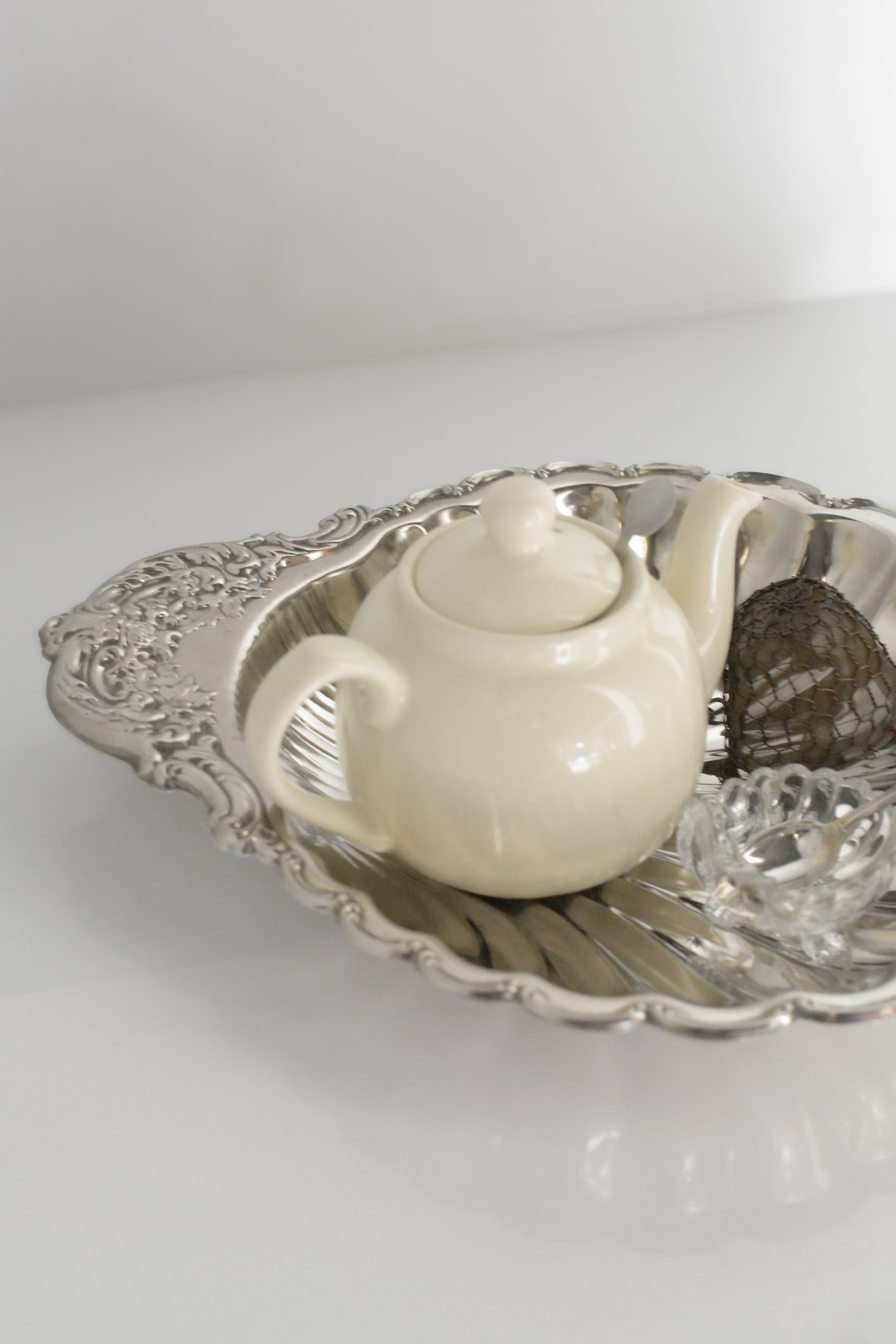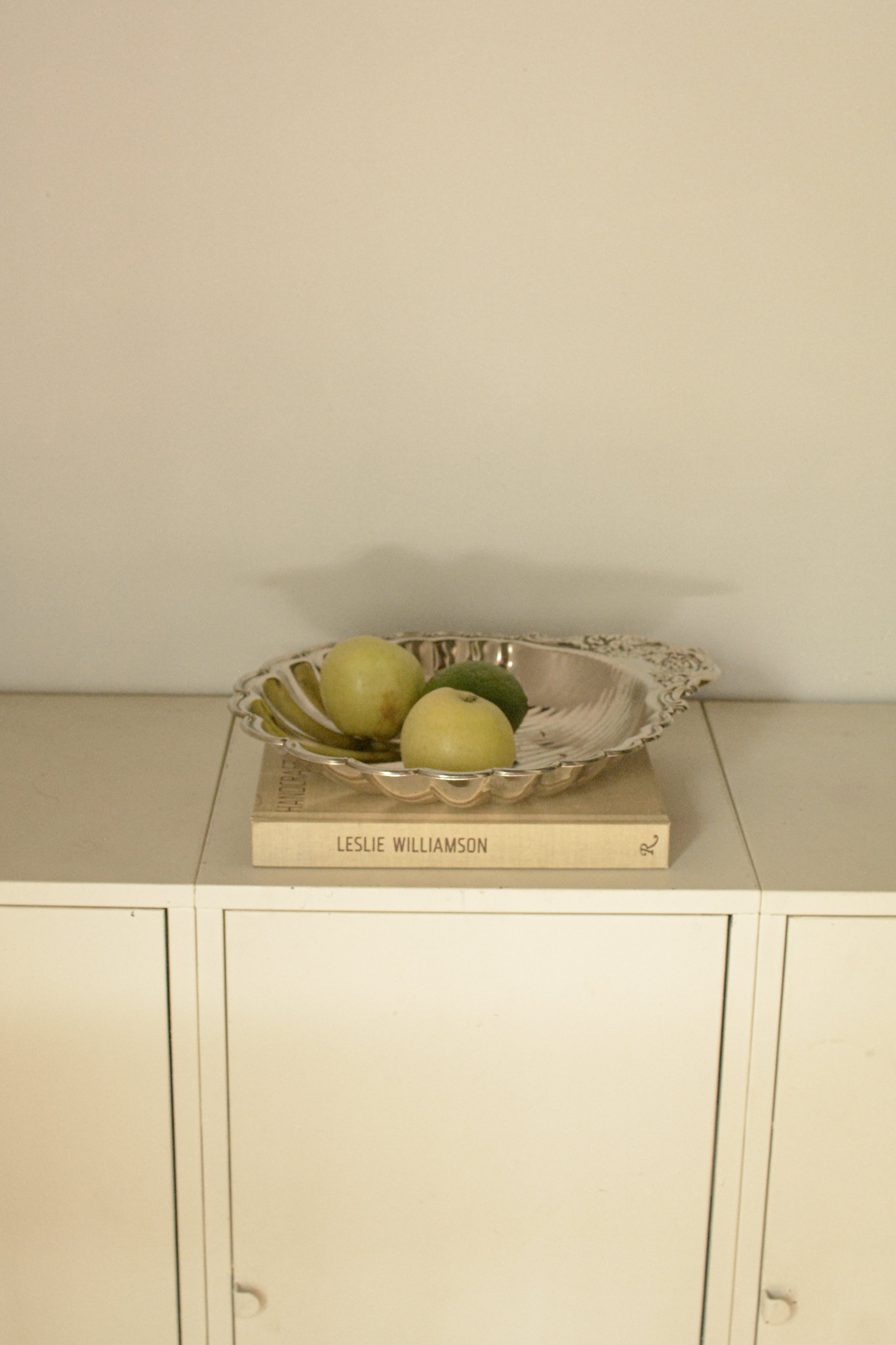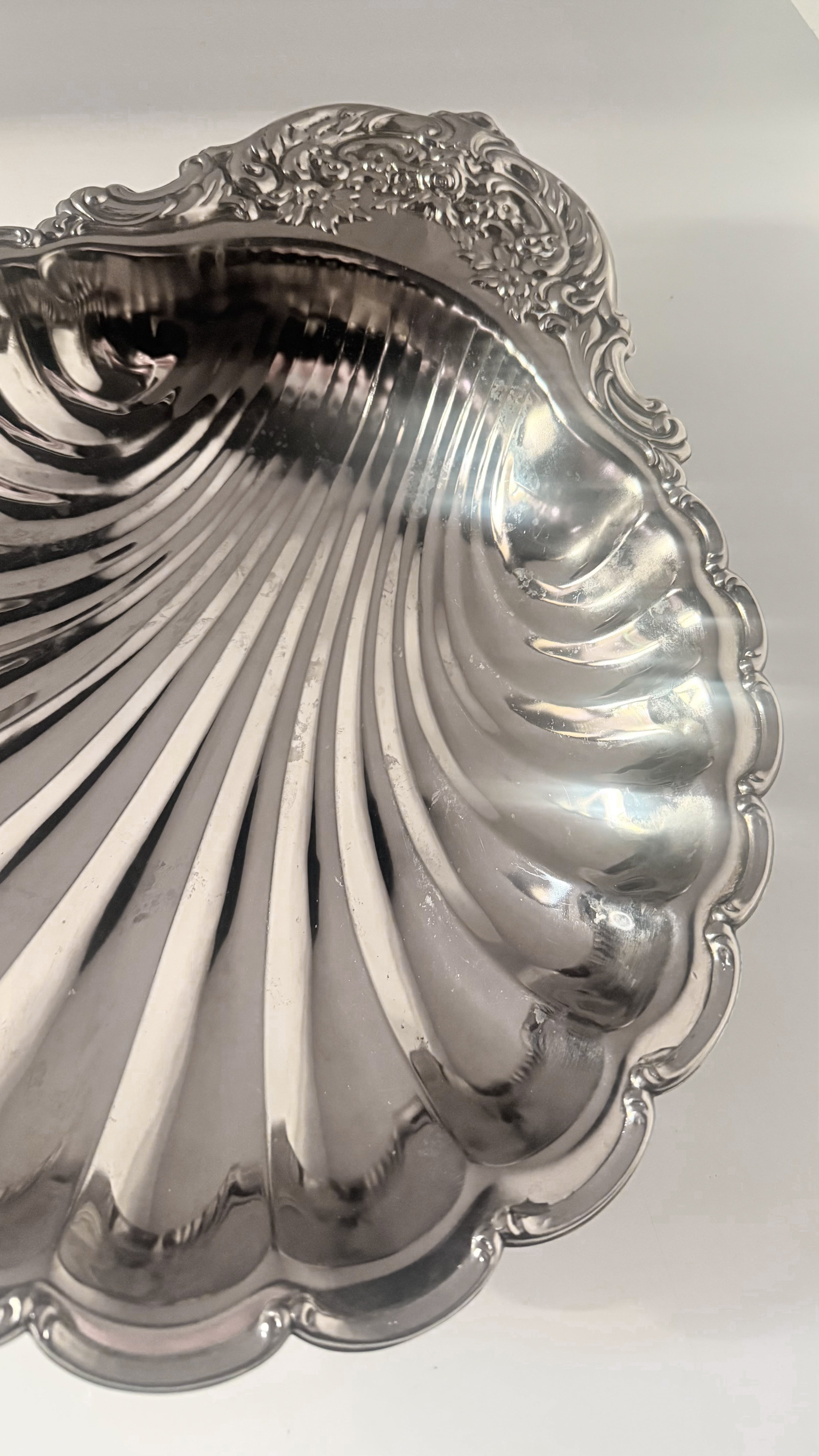 やさしく光を受ける、シルバープレートのサービングディッシュ。波のようなリブ模様と縁を囲む繊細な装飾が美しいお品です。果物をのせたり、テーブルのアクセントとしても存在感のあるアイテムです。小物入れとしても小物をまとめるのにさりげなく美しい景色へ変えてくれますね。 使用にともなうわずかな擦れや風合いも、長く大切にされてきた時間の跡としてお楽しみください。