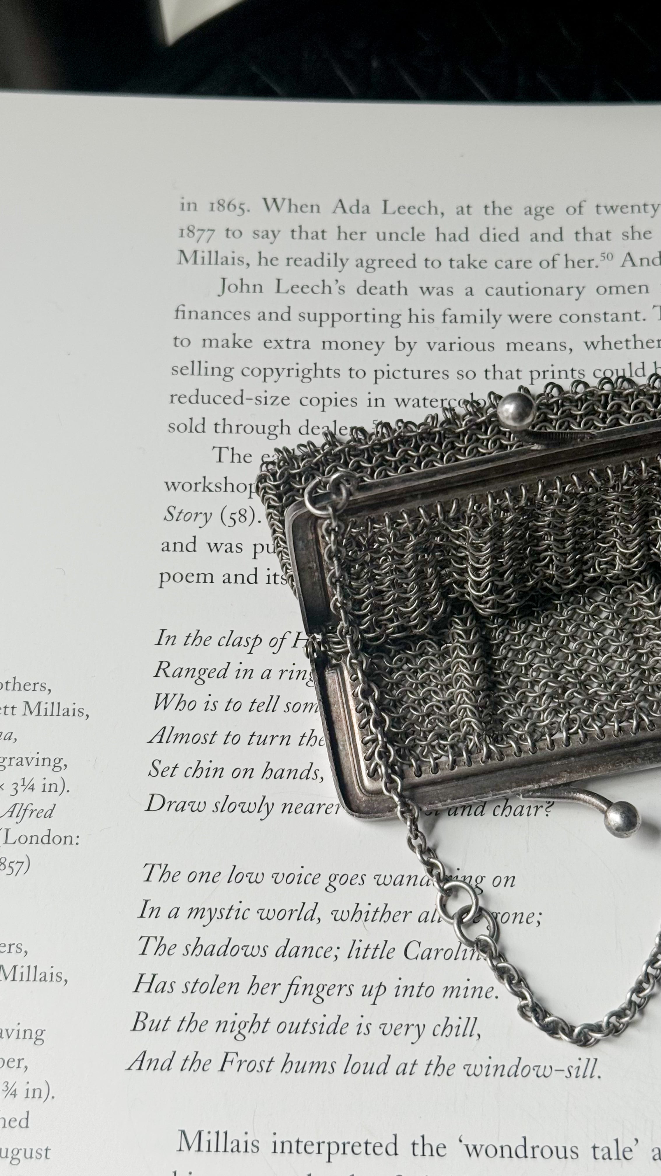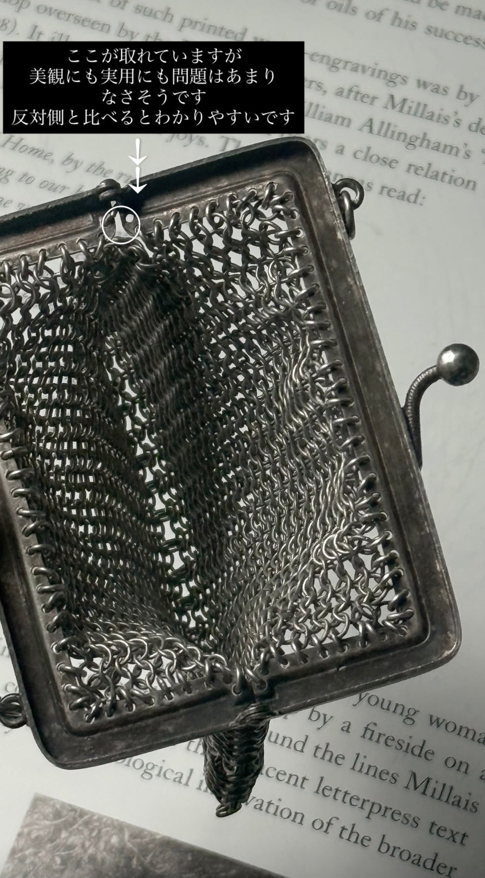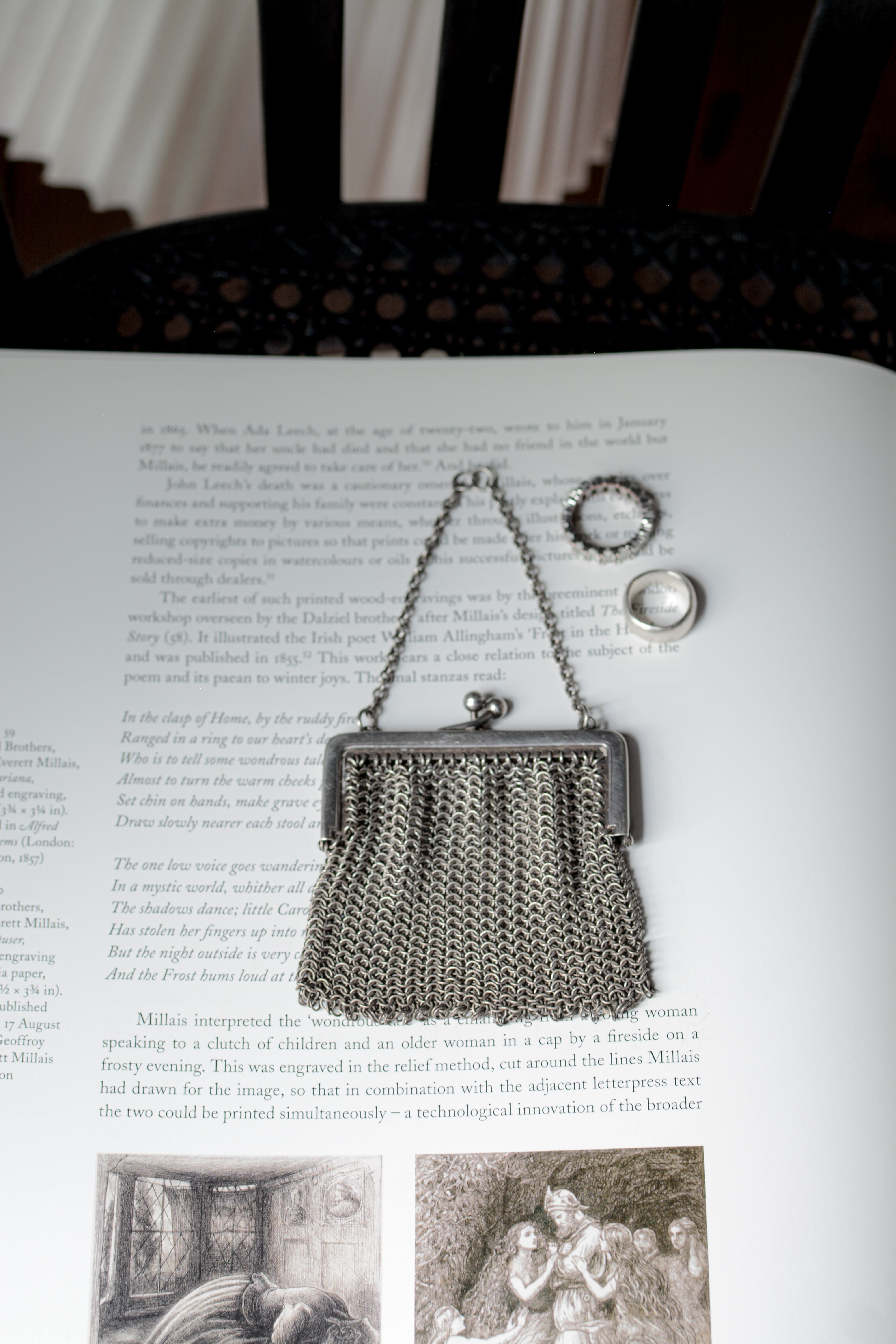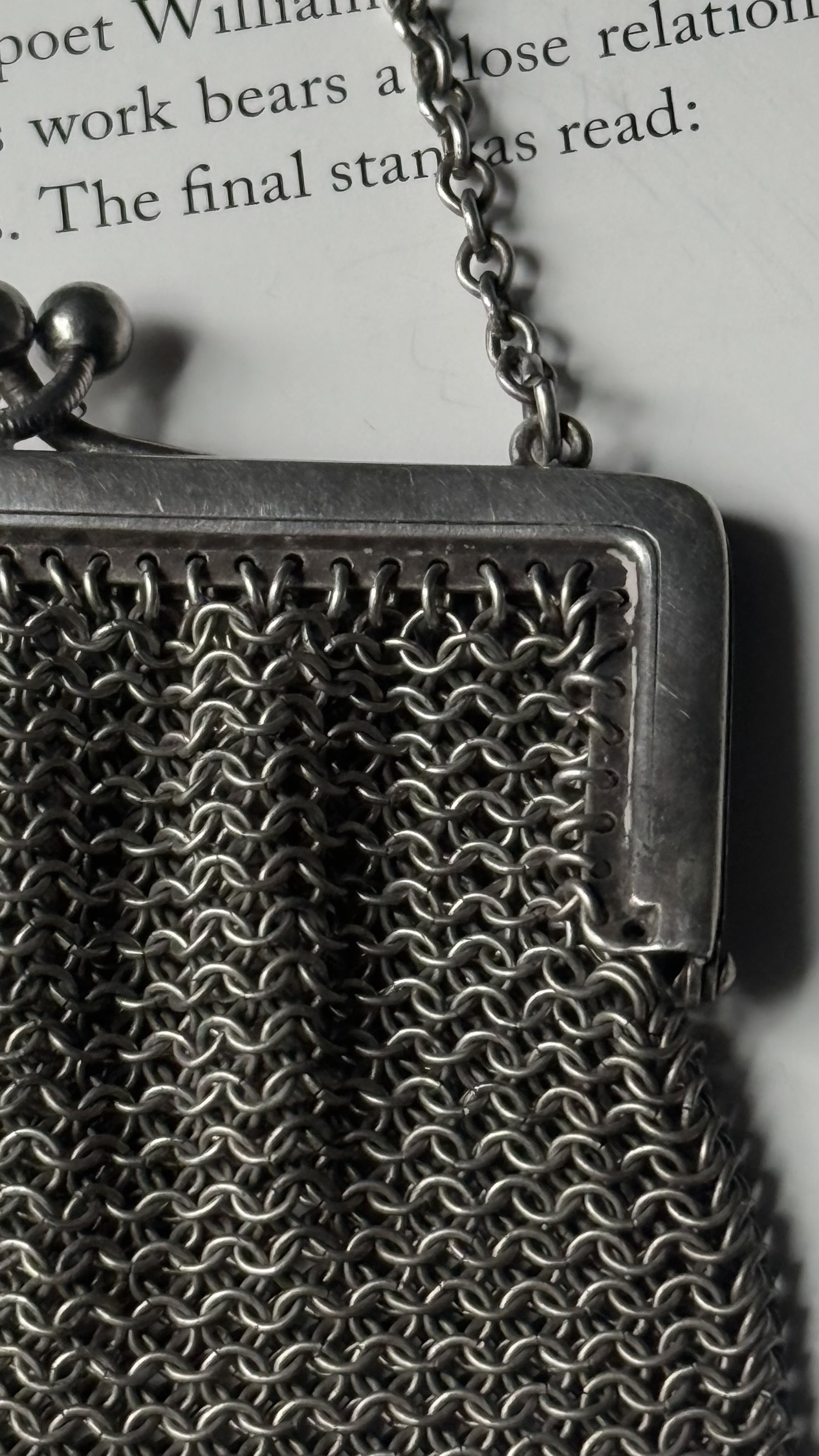 繊細な銀の糸を編むようにしてつくられた、1920年代頃の小さなイブニングパース。細やかなメッシュの編み目は、まるで金属のレースのよう。