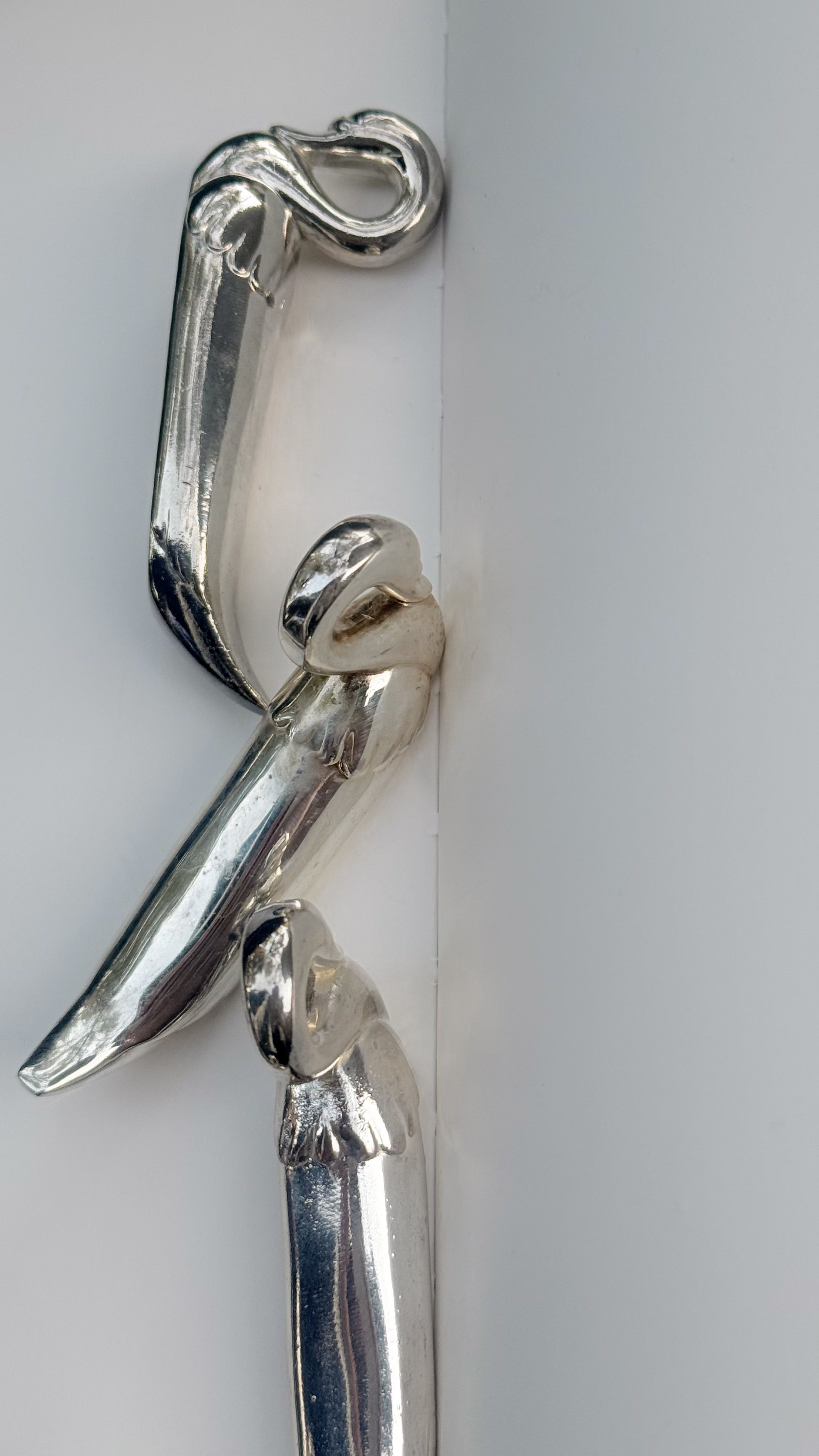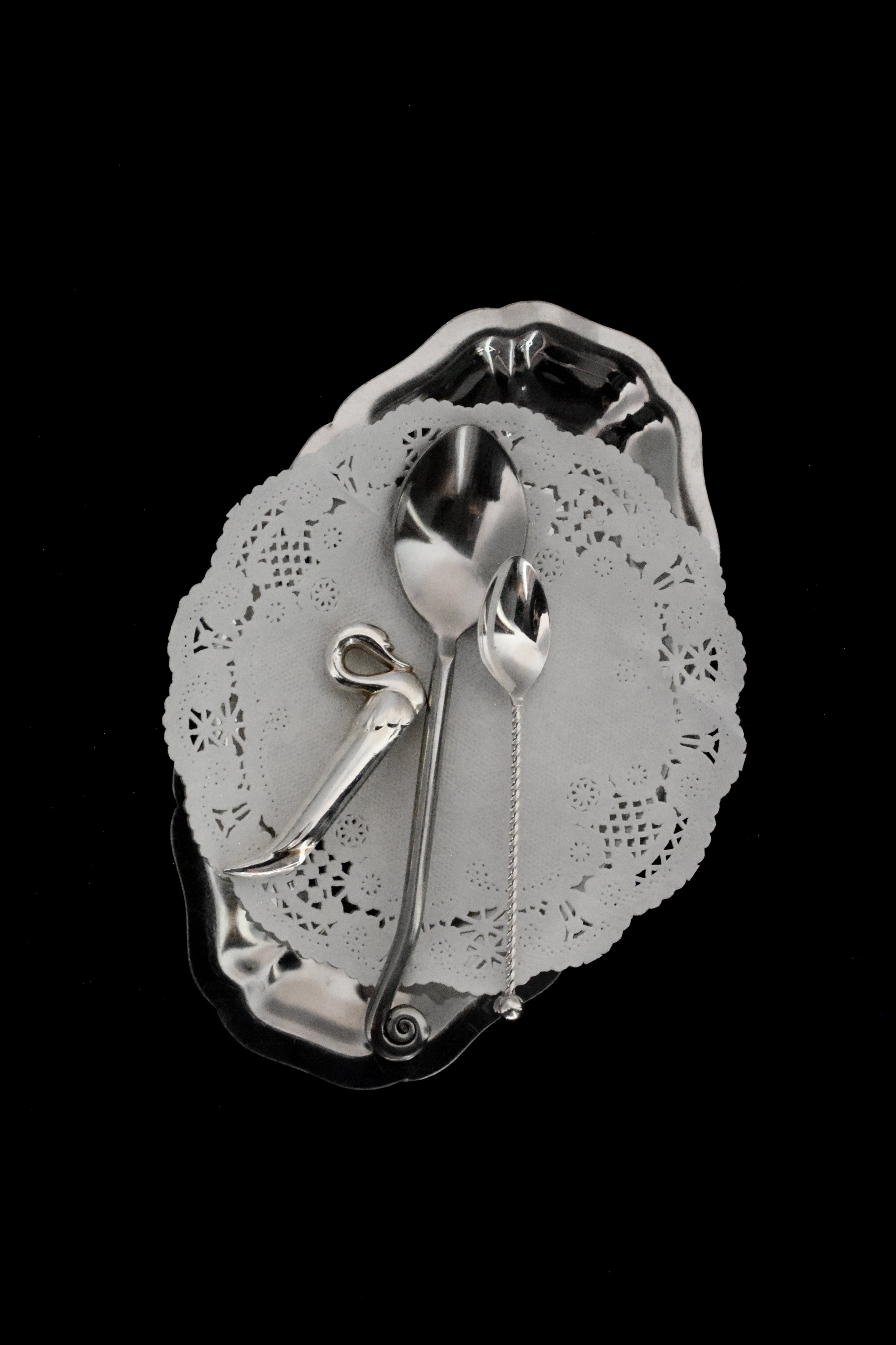 ドイツヴィンテージのナイフレスト。ほんの小さな道具でありながら、羽根の曲線や首の傾きまで丁寧に形づくられたオブジェのような存在感。時間を旅してきた銀の表情が、穏やかに残っています。日々のテーブルにひとつ置けば、時間が少しだけ静かに澄んでゆくよう。カトラリーを支える時の白鳥はまるで水面に浮かぶときのように重さを受け止めながらも、どこか軽やかで、今日のテーブルをやさしく整えてくれるかと思います。複数在庫ございますので、セレクトしてのお届けとなります。