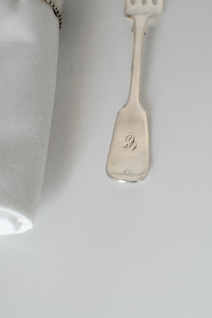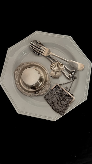 “A1 HW S EP” の刻印、表側には筆記体で描かれた “C” のモノグラム入り。当時の持ち主のイニシャルがそっと残されており、時を経た銀器ならではのストーリーを感じられます。日常の様々なシーンで使いやすいサイズ感。古い銀器らしいやわらかな輝きがあり、使うたびにテーブルの雰囲気をひとつ深めてくれます。コンディションは、年代物としては良好です。小さな擦れや使い跡はありますが、アンティークとして自然で、味わい深い佇まいとなっています。差異はほとんどございませんので、セレクトしてのお届けとなります。