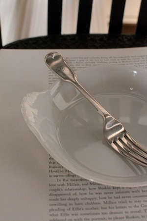 静かな時間にそっと寄り添う、イギリスのアンティークフォーク。フィドルパターン特有の、すっと伸びるラインと控えめな装飾が美しく、上品な佇まいを見せてくれます。20 世紀初頭につくられたフォークで、ハンドル裏には