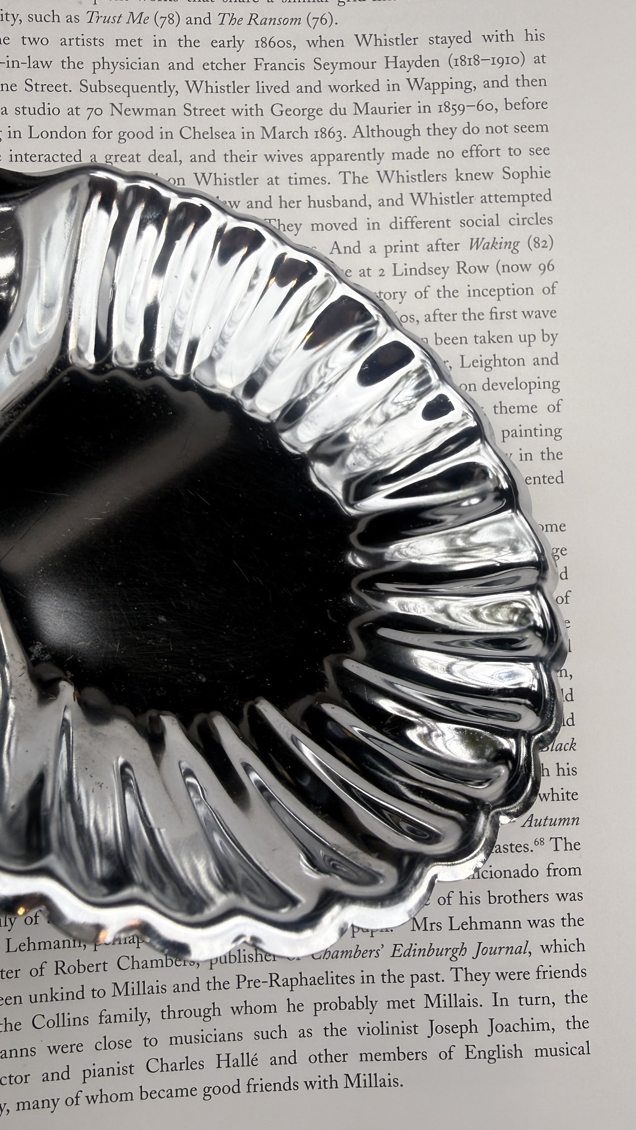柔らかな曲線が美しい、シェル型のヴィンテージメタルトレイ。滑らかなフォルムが、空間に静かな存在感を添えてくれます。光を受けると、貝殻のレリーフがふんわりと陰影をつくり、シルバーカラーの輝きが引き立つ一品。キャンドルをのせたり、アクセサリー、鍵などの小物置きとしてはもちろん、そのまま飾ってもアートオブジェのように楽しめます。シンプルな中にもどこか遊び心があり、日常にそっとニュアンスを届けてくれるヴィンテージトレイです。小傷等ございますが、ヴィンテージとしては比較的綺麗な状態です。