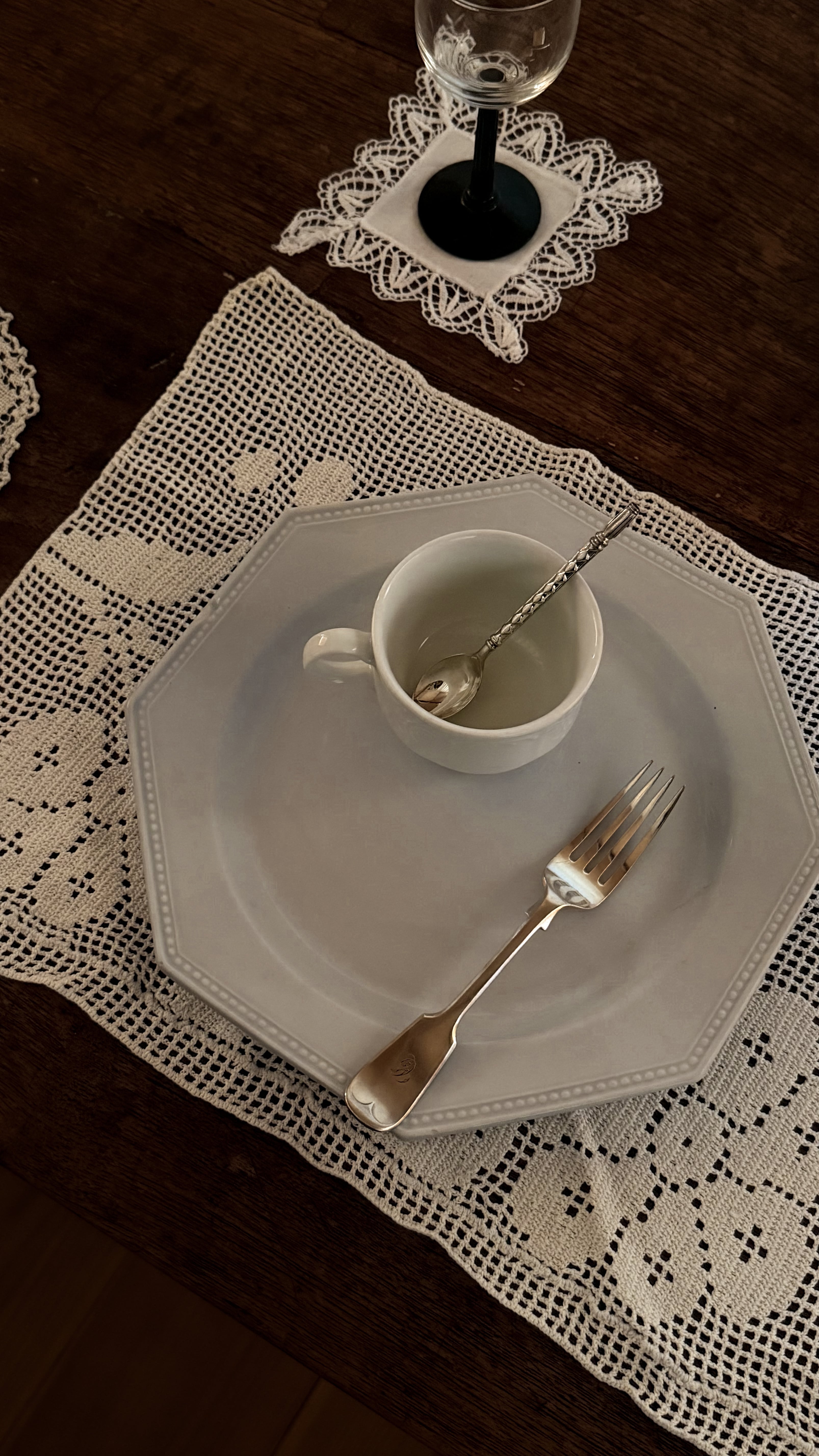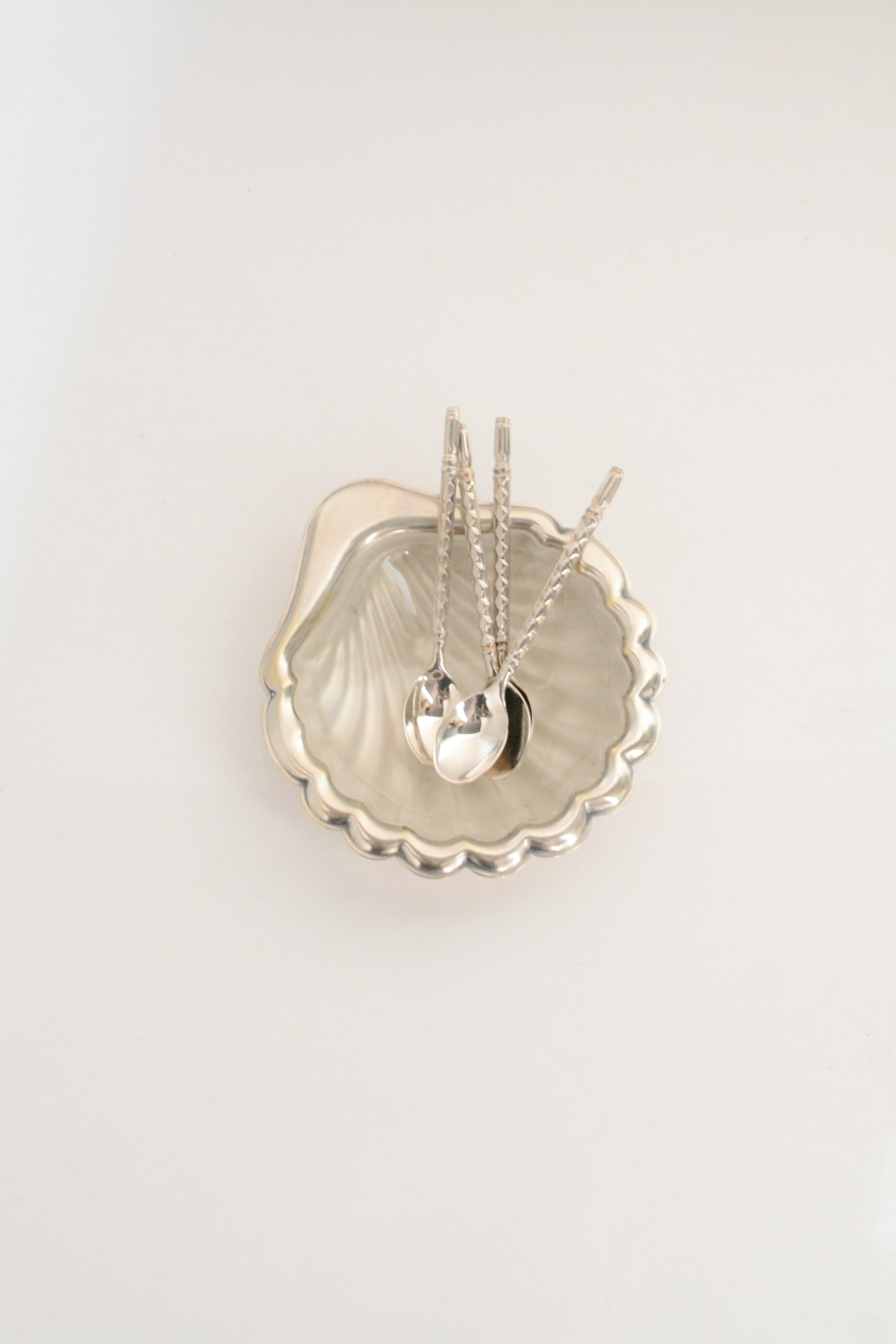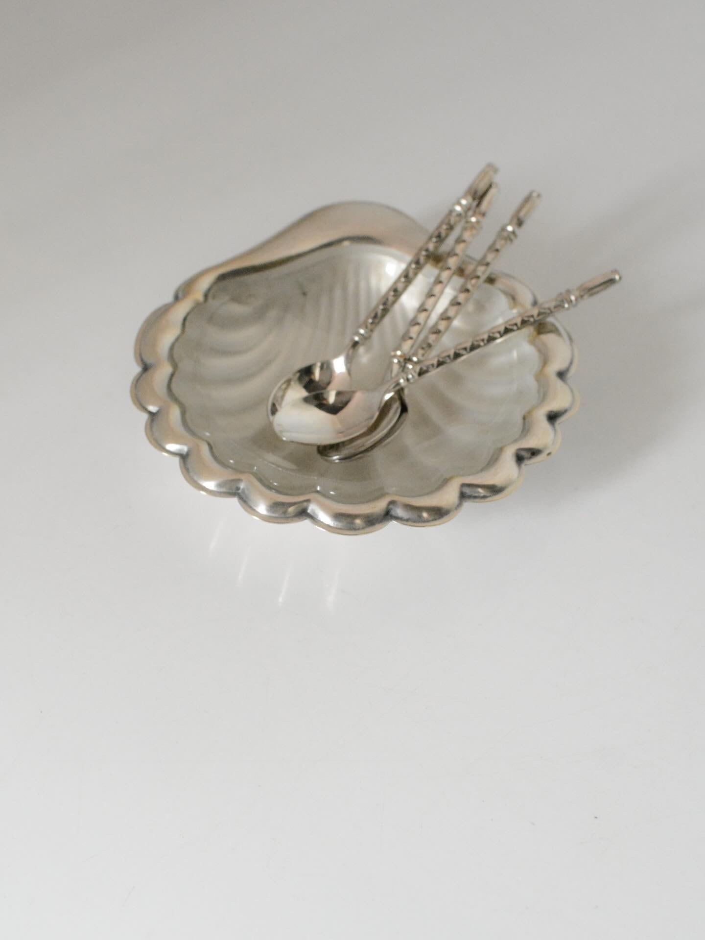静かな光をまとった、ヴィンテージスプーン。ハンドルには、ダイヤモンドモチーフがリズムよく刻まれ、手に取るたび、ささやかな装飾美を感じさせます。派手さはなく、語りすぎない佇まい。金属の冷たさと、やわらかな表情が、日常の中に静かな余白を生み出します。時を重ねたものならではの小さな擦れや陰影も、このスプーンの一部としてお楽しみください。ささやかなテーブルでの休息のひとときに、あるいは、引き出しの中の小さなコレクションとして。小傷などございますが、ヴィンテージとしては比較的綺麗な状態です。