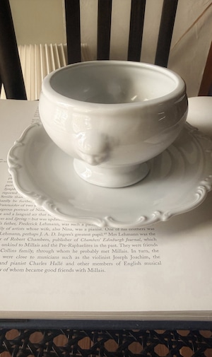 フランスのビストロで長く愛されてきた、ライオンヘッドのオニオンスープボウル。丸みのある厚手のフォルムと、両サイドに施された立体的なライオンの表情が、静かに存在感を放つアイテムです。保温性に優れ、オニオンスープ、煮込み料理に使われていたのでしょうか、温かい空気を醸し出しています。また、安定感のある形は、球根植物のベースとして使っても可愛らしく、季節のしつらえとして楽しむのもおすすめです。釉薬のムラや焼き上がりには個体差があり、それぞれが少しずつ異なる表情を持っているのも魅力。テーブルにも、暮らしの景色にも、自由な発想で取り入れていただける器です。小傷等ございますが、ヴィンテージとしては比較的綺麗な状態です。複数在庫ございますので、セレクトしてのお届けとなります。