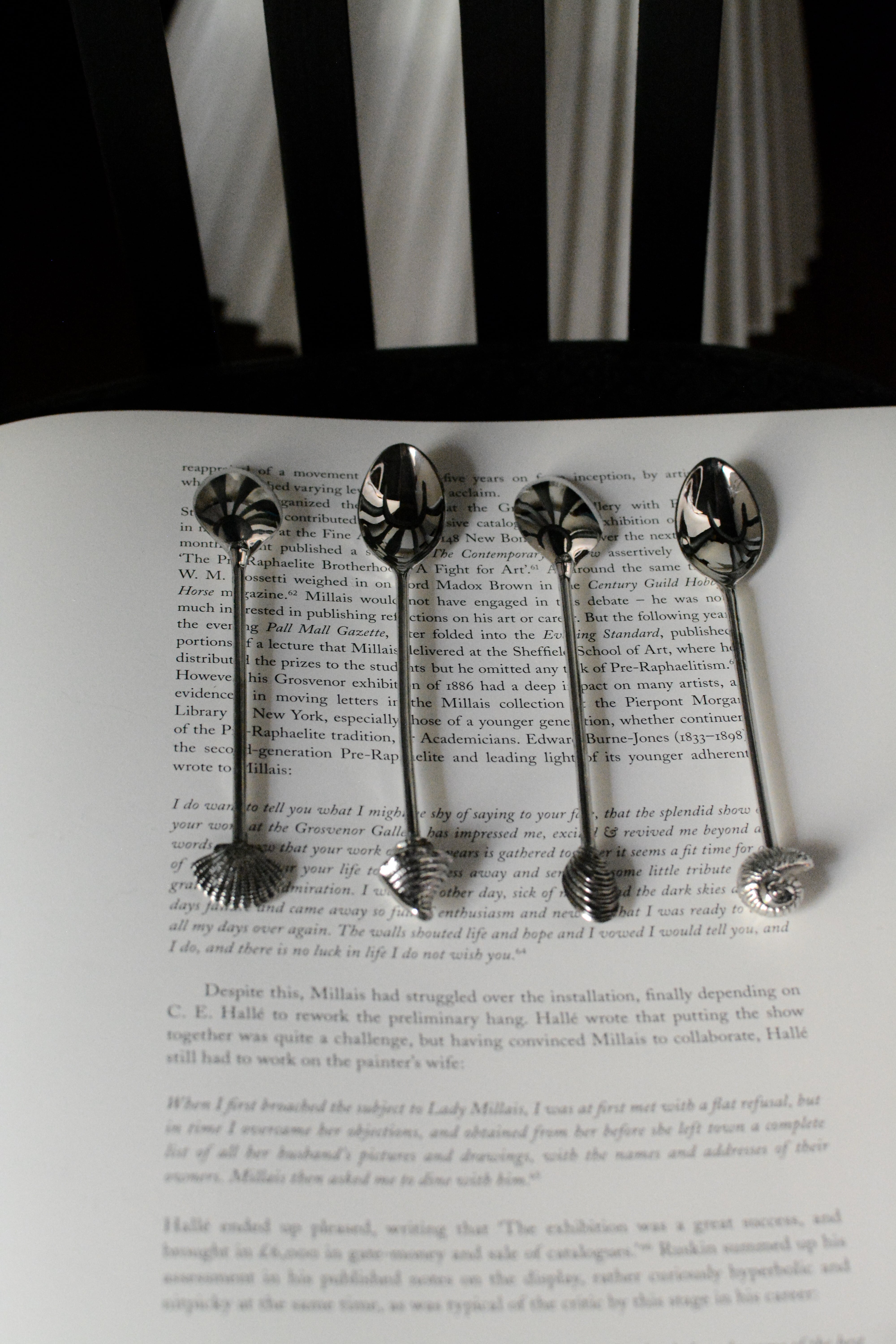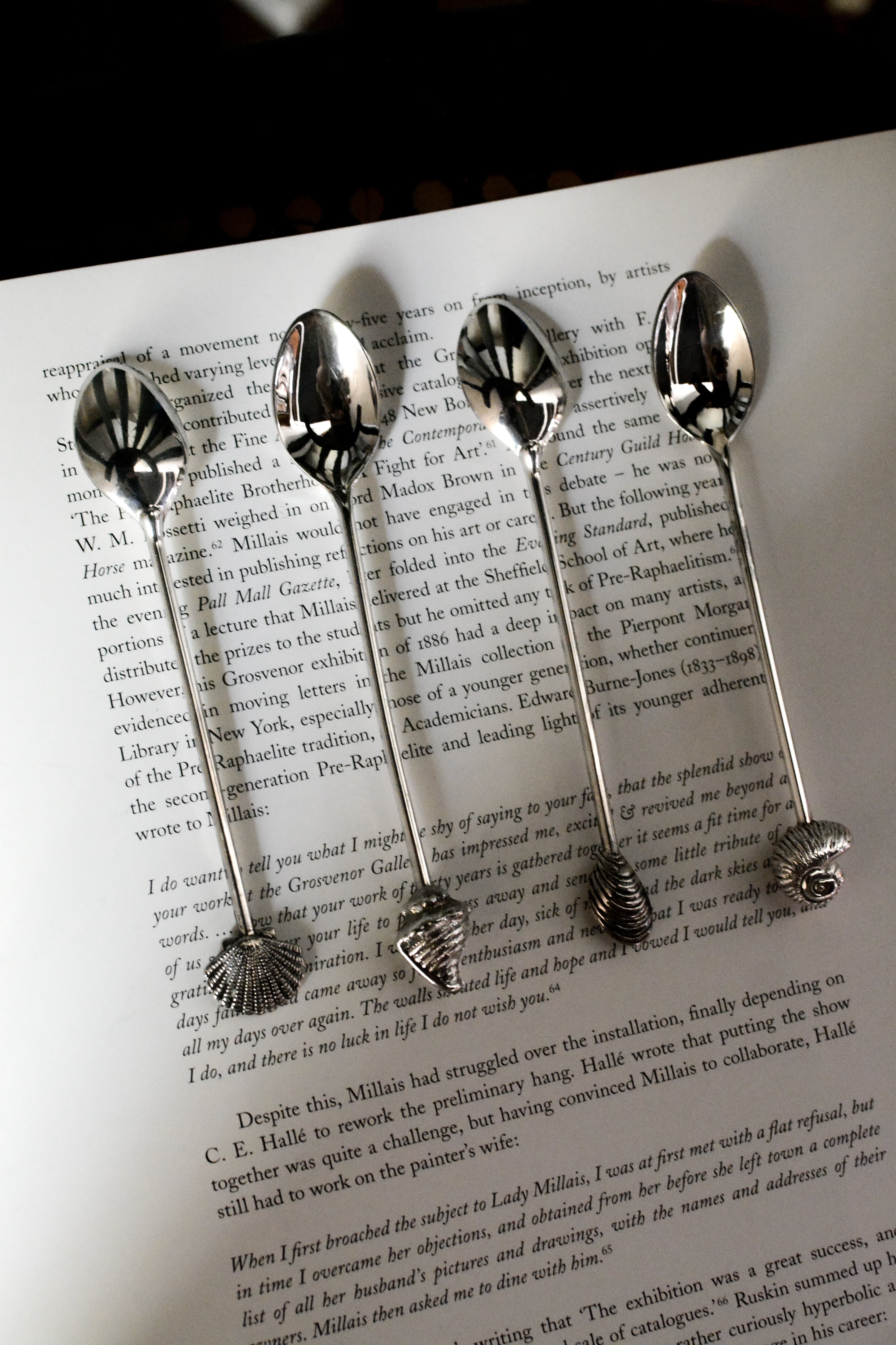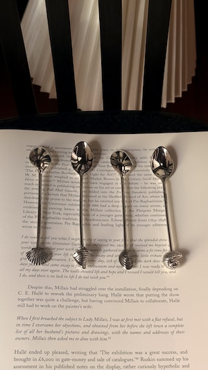 シェルモチーフの装飾が印象的な、ヴィンテージのシルバープレートのスプーンです。異なる4種類の貝殻デザインが施されています。持ち手の立体的なモチーフと、すっきりしたボウル部分のコントラストが美しく、ティータイムはもちろん、ディスプレイやコレクションにも◎小ぶりながら存在感があり、並べるだけでも雰囲気をつくってくれます。経年によるわずかなスレやくすみなど、ヴィンテージならではの風合いがあり、経年による風合いそれもまた、このスプーンが辿ってきた時間の一部としてお楽しみください。複数在庫ございますのでセレクトしてのお届けとなります。