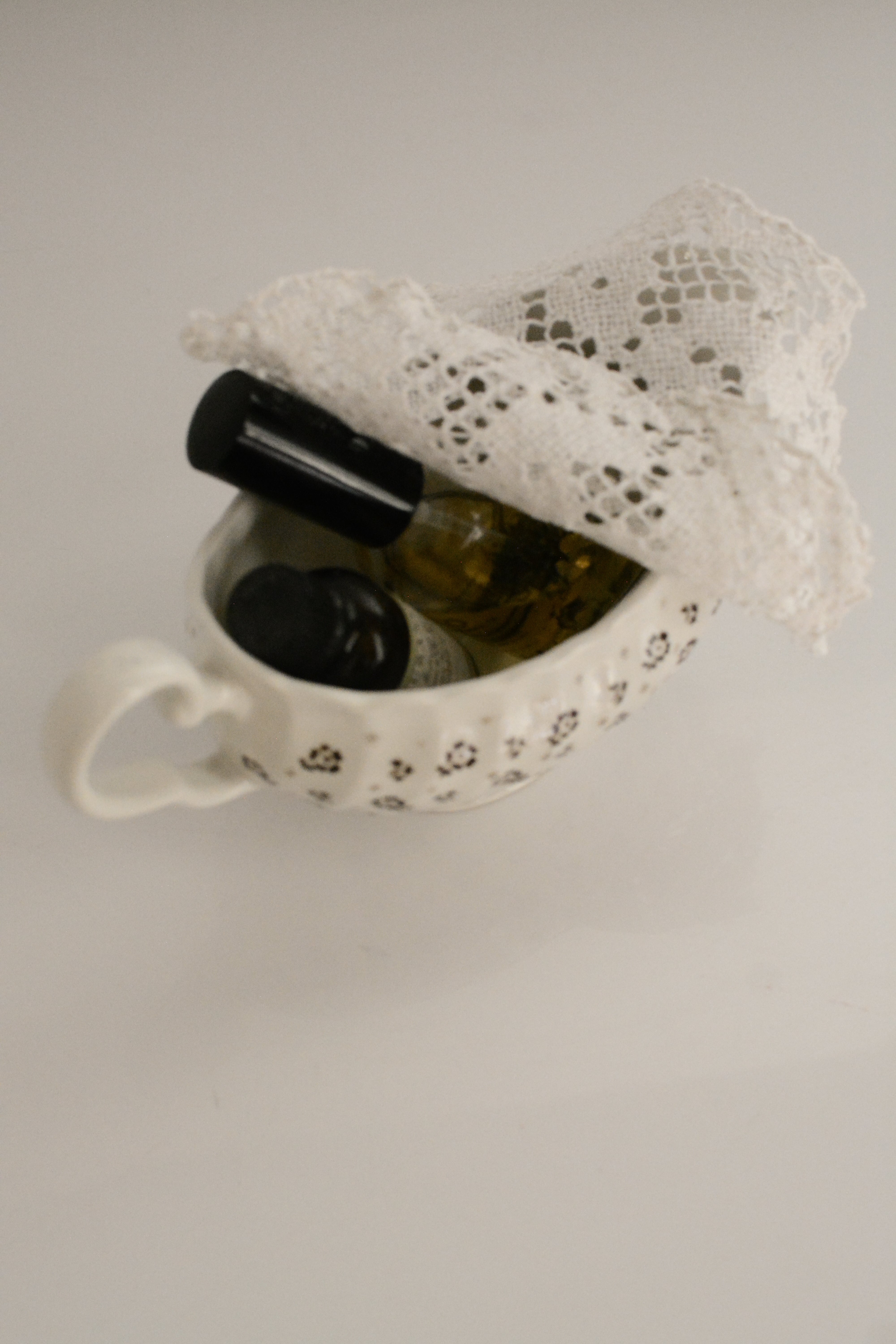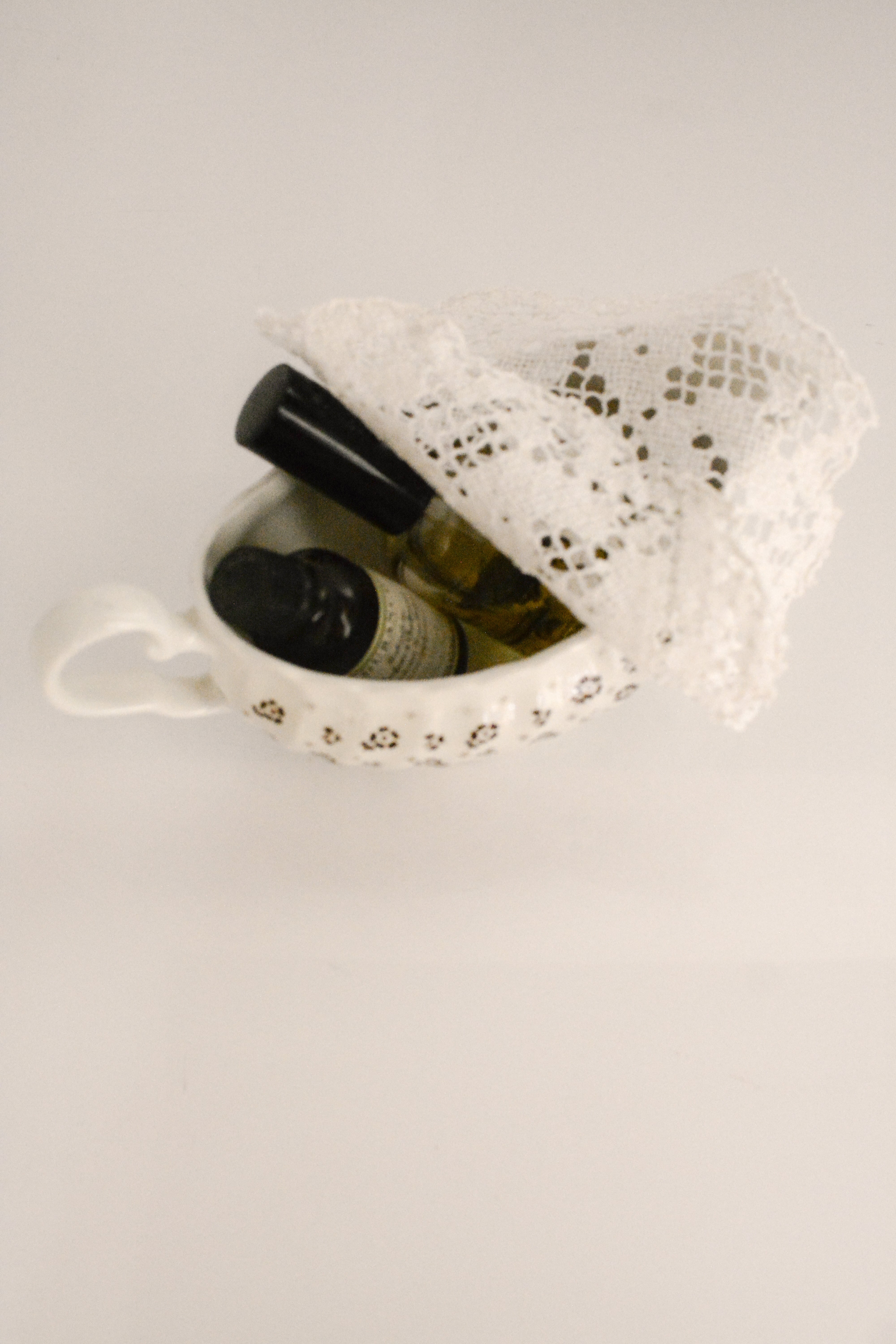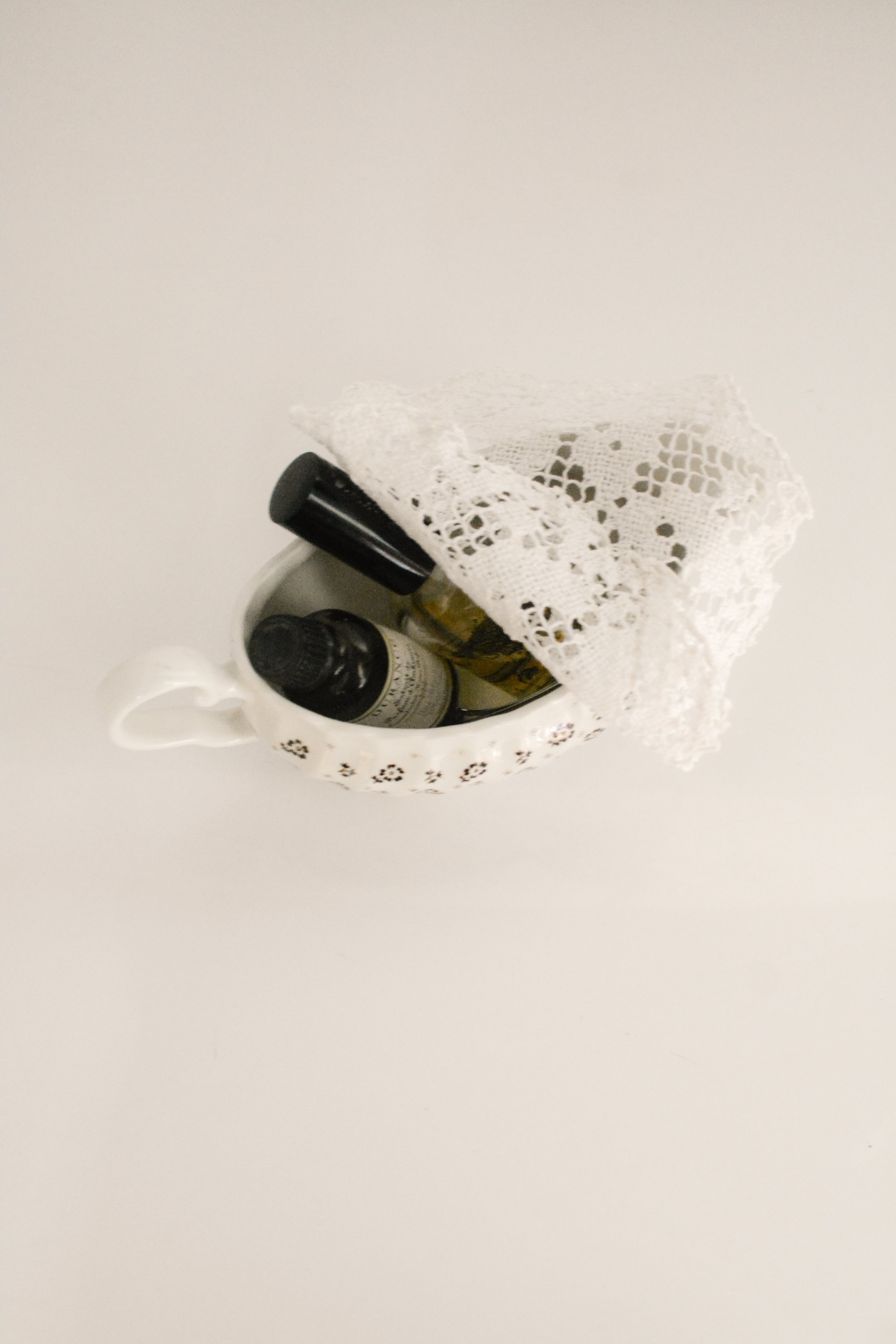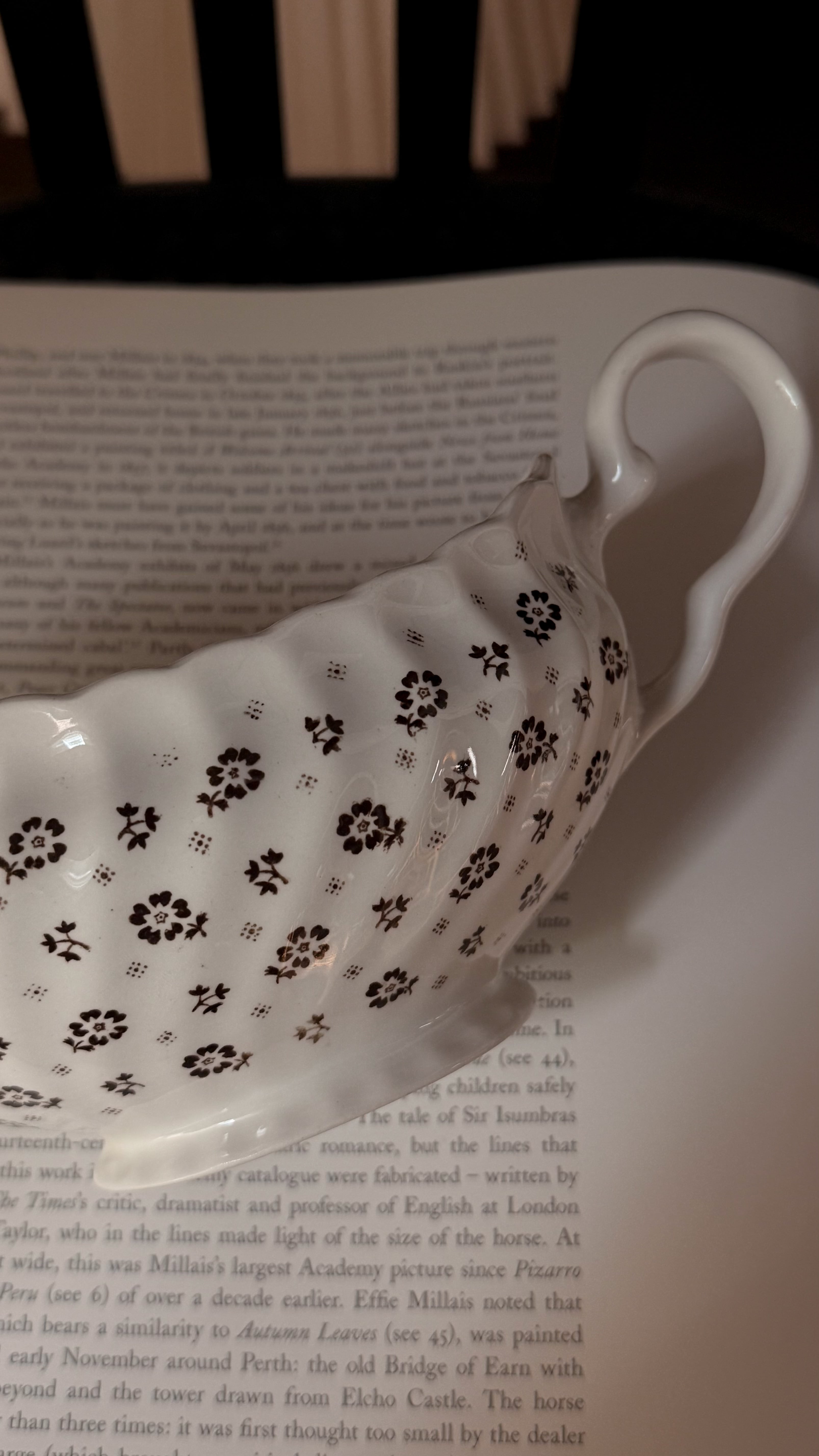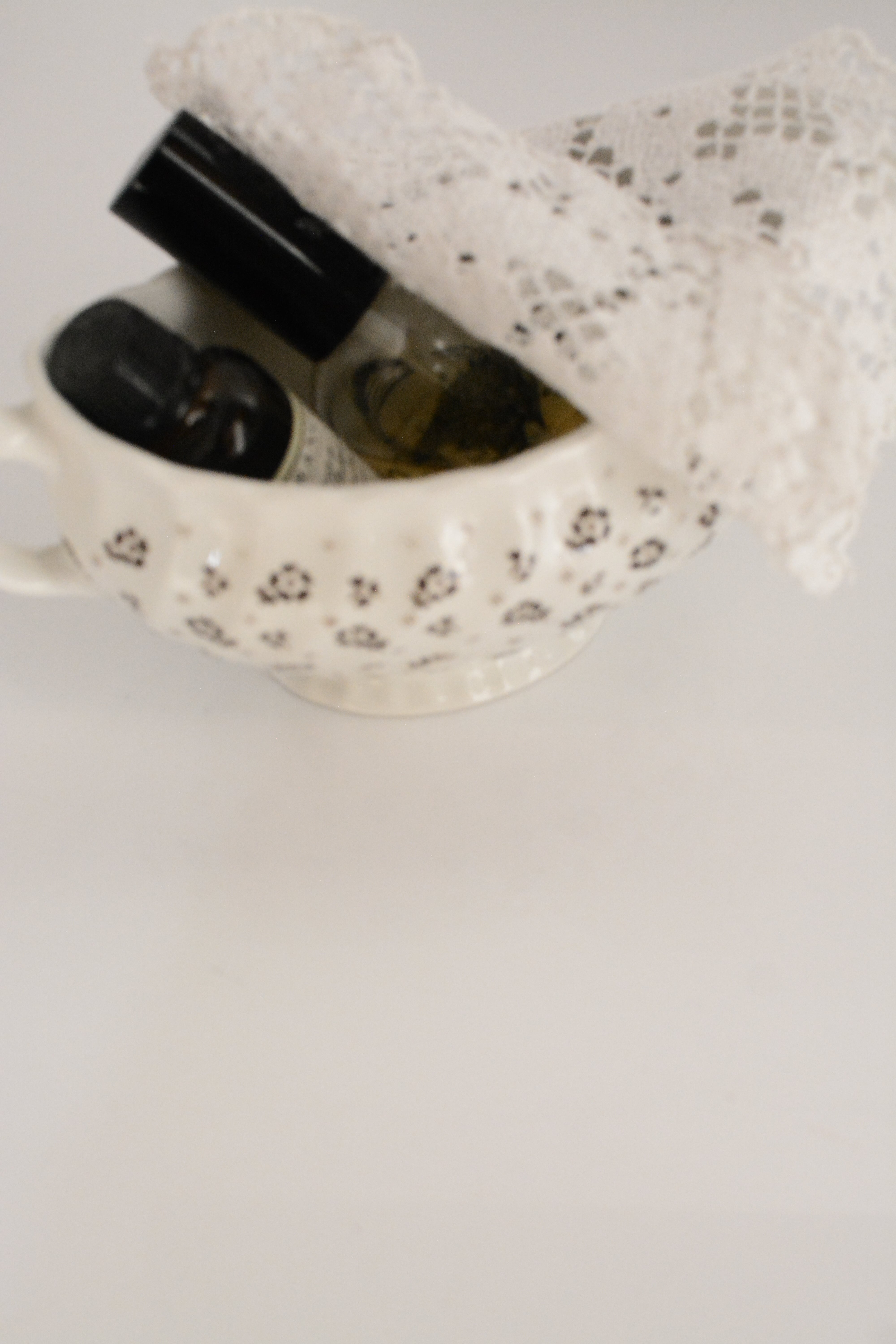 イギリスヴィンテージのソースボート。やわらかなクリームホワイトの地に、小さなブラウンの小花模様が散りばめられ、素朴さと可憐さをあわせ持ったデザイン。外側には繊細なレリーフ装飾、縁はゆるやかな波型になっており、さりげない華やかさを添えてくれます。ソースやドレッシングに使われていたかと思いますますが、お花をいけたり、キャンディやチョコレートを入れてテーブルコーディネートのアクセントとしても活躍します。春には球根植物や小さなグリーンを合わせたり、花器のように使うのもおすすめ。ポプリを入れて香りを楽しんだりとアレンジが楽しいお品です。