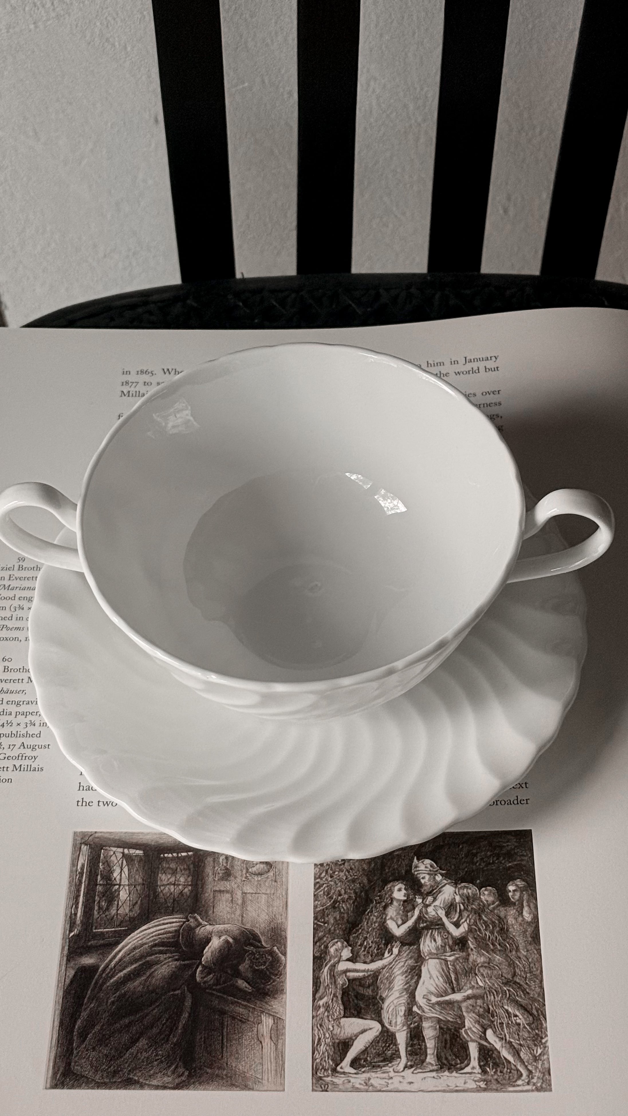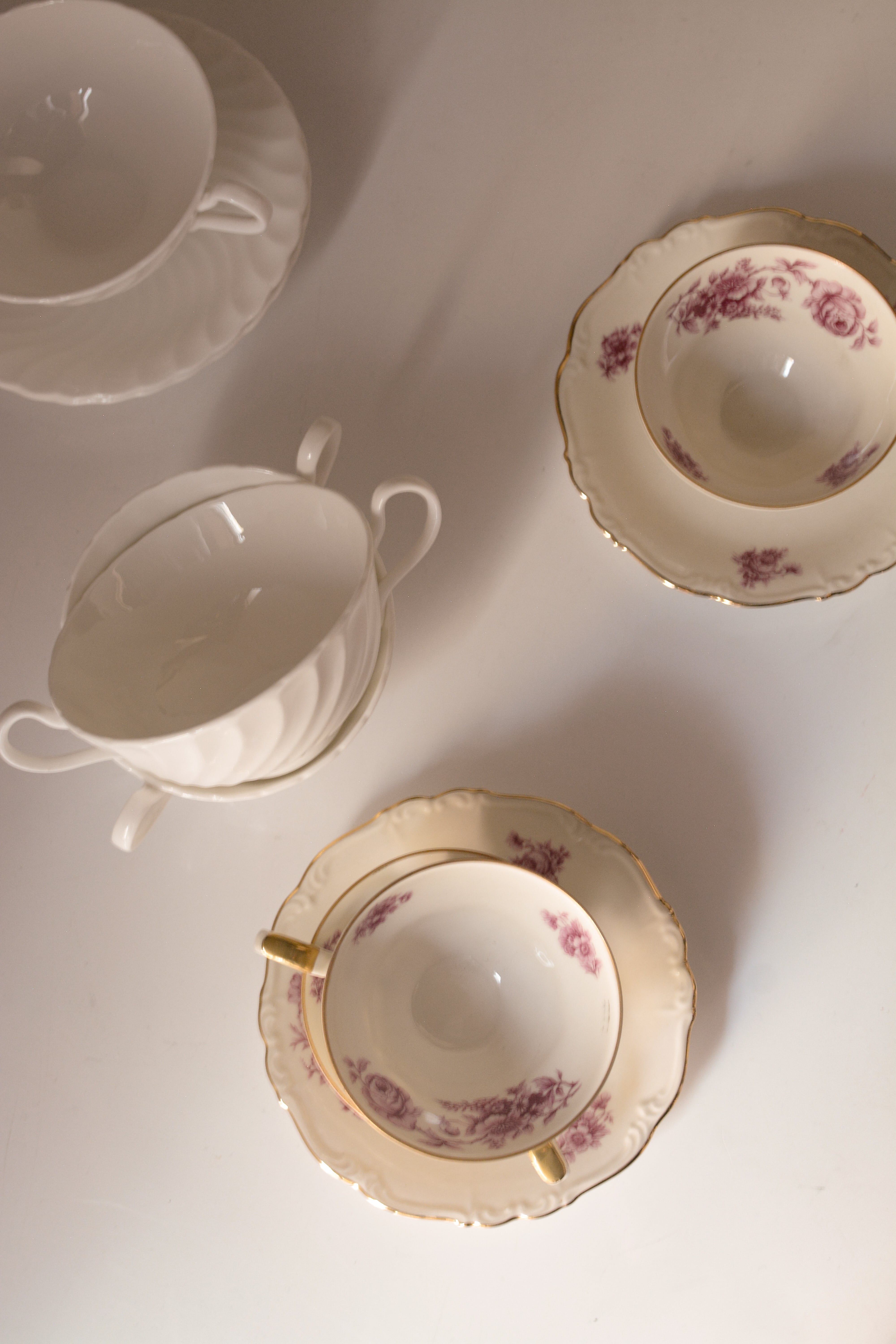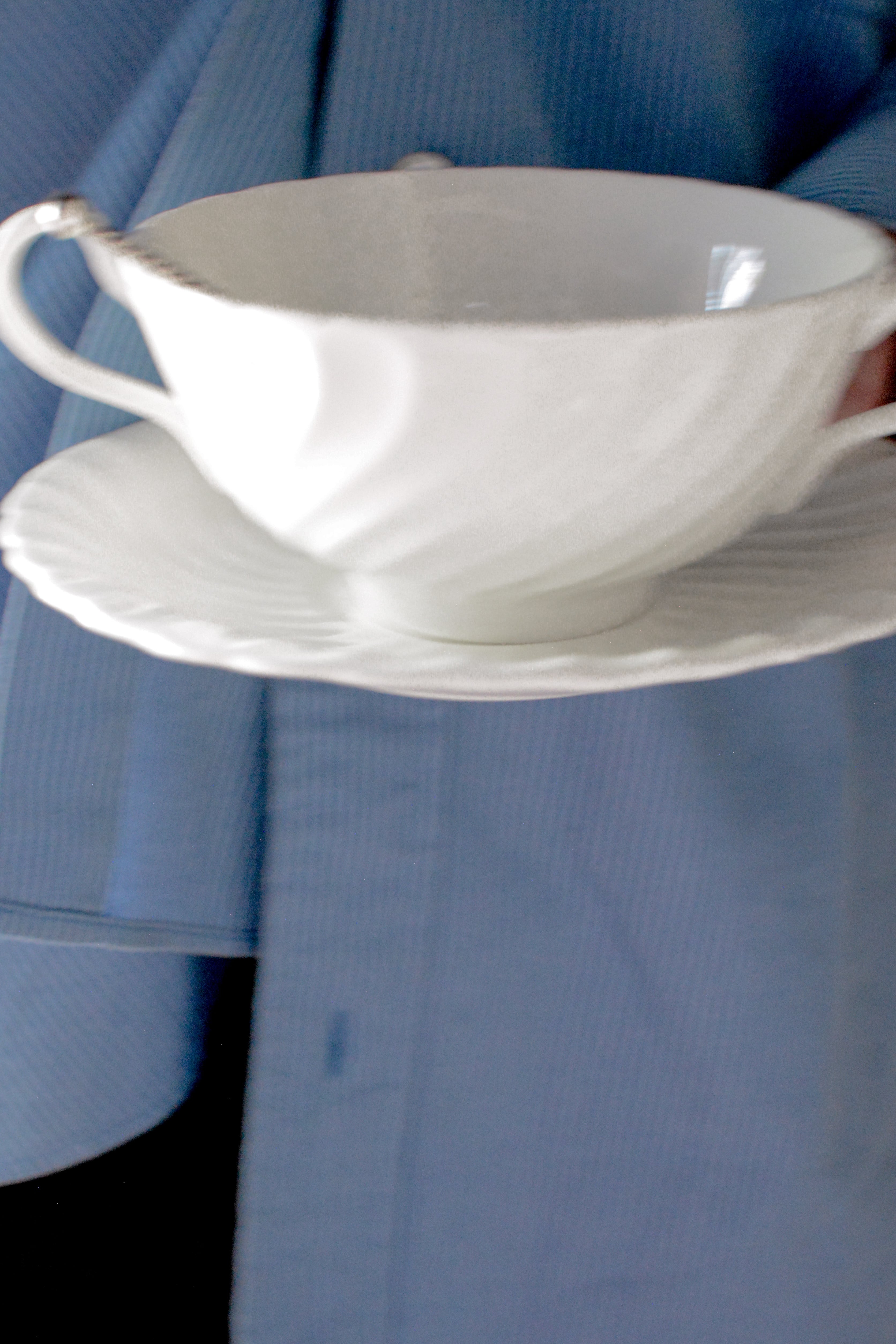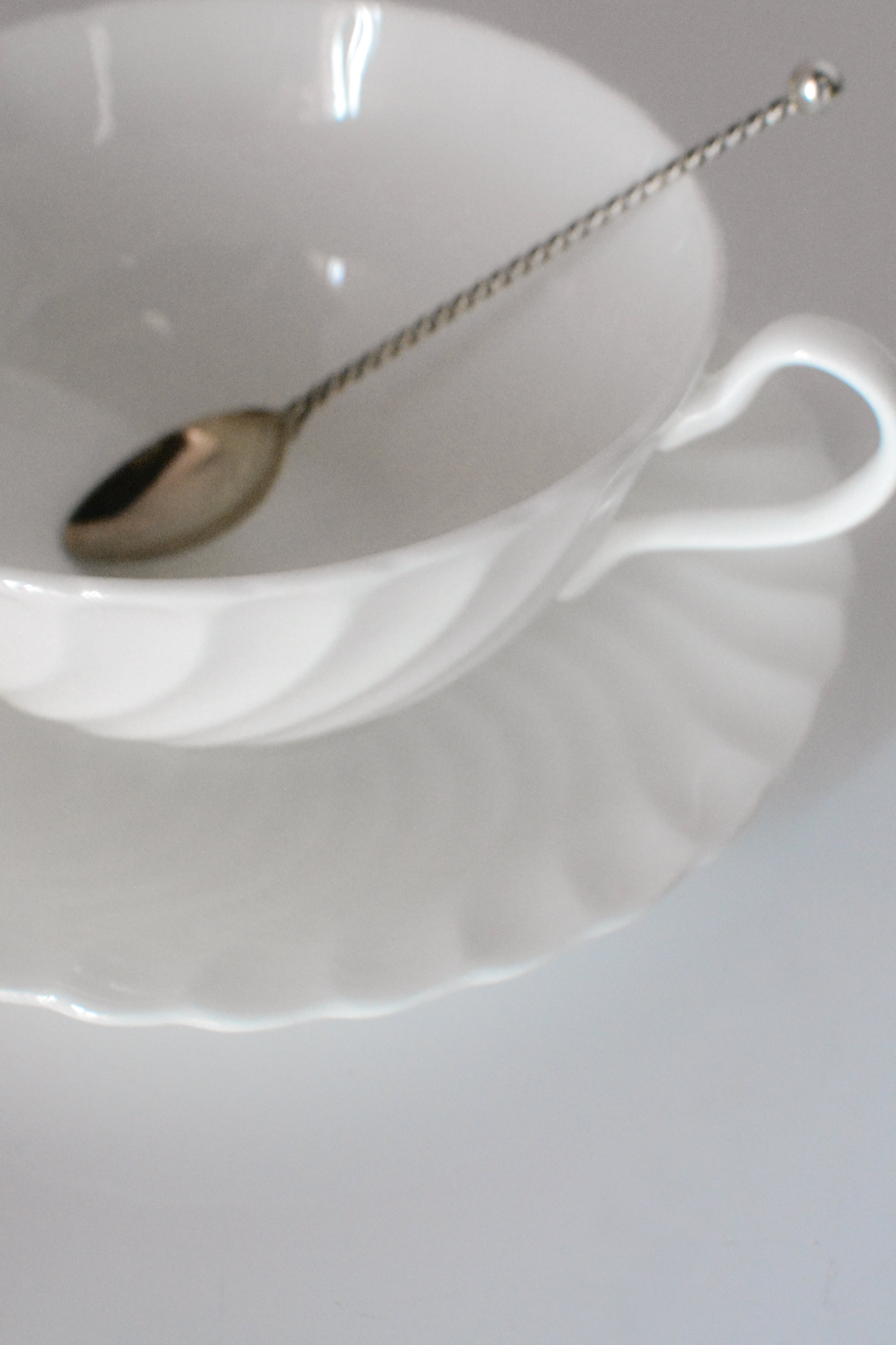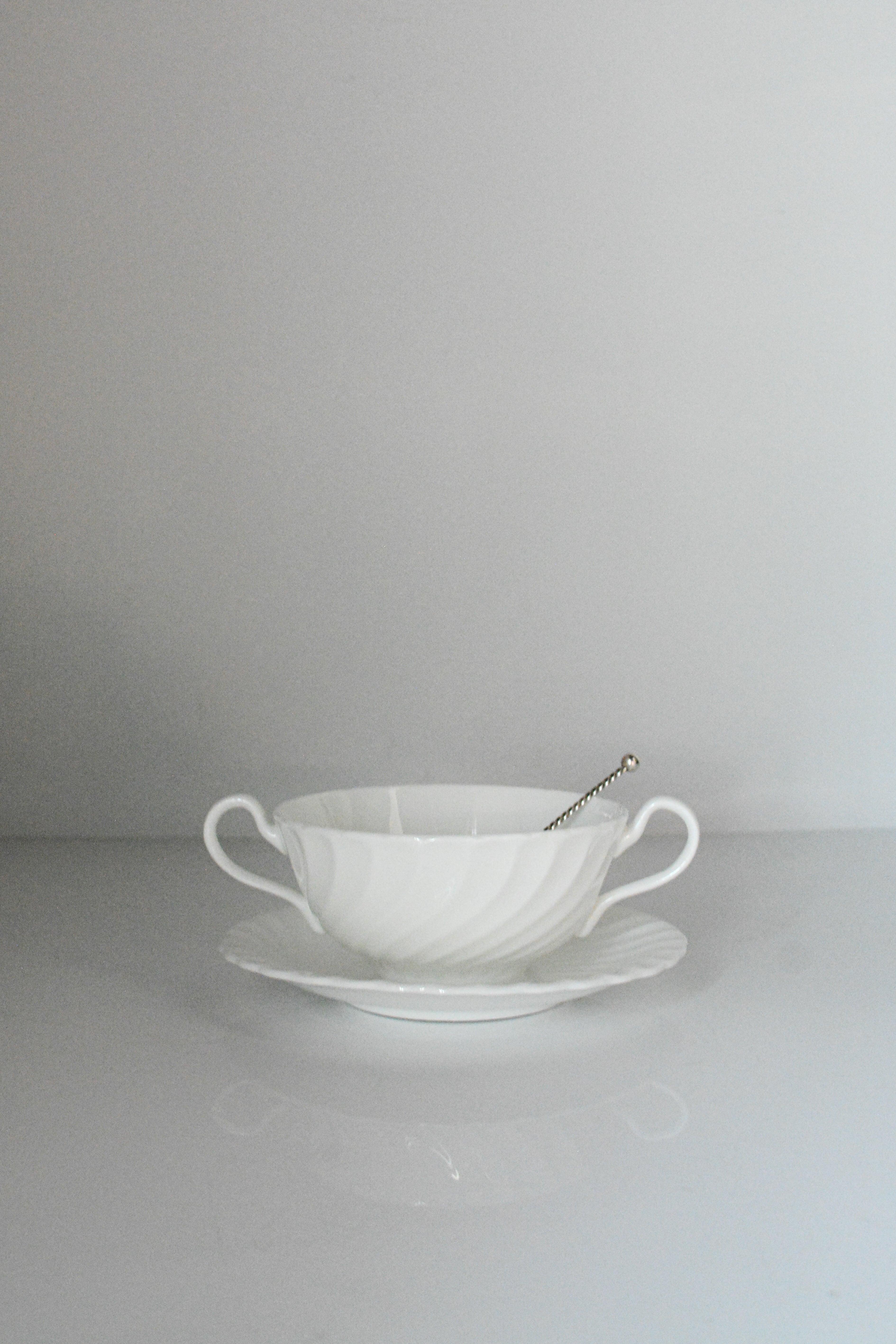 やわらかな白が美しいイギリスヴィンテージのスープカップ&ソーサー。流れるようなレリーフが光をやさしく受け、シンプルでどんなテーブルにもすっと馴染み、長く愛される普遍的な佇まいです。スープ、カフェオレやデザートカップとして使われていたのでしょうかとても上質な雰囲気。複数在庫ございます。差異はほとんどございませんので、セレクトしてのお届けとなります。小傷等ございますが、ヴィンテージとしてはとても綺麗な状態です。