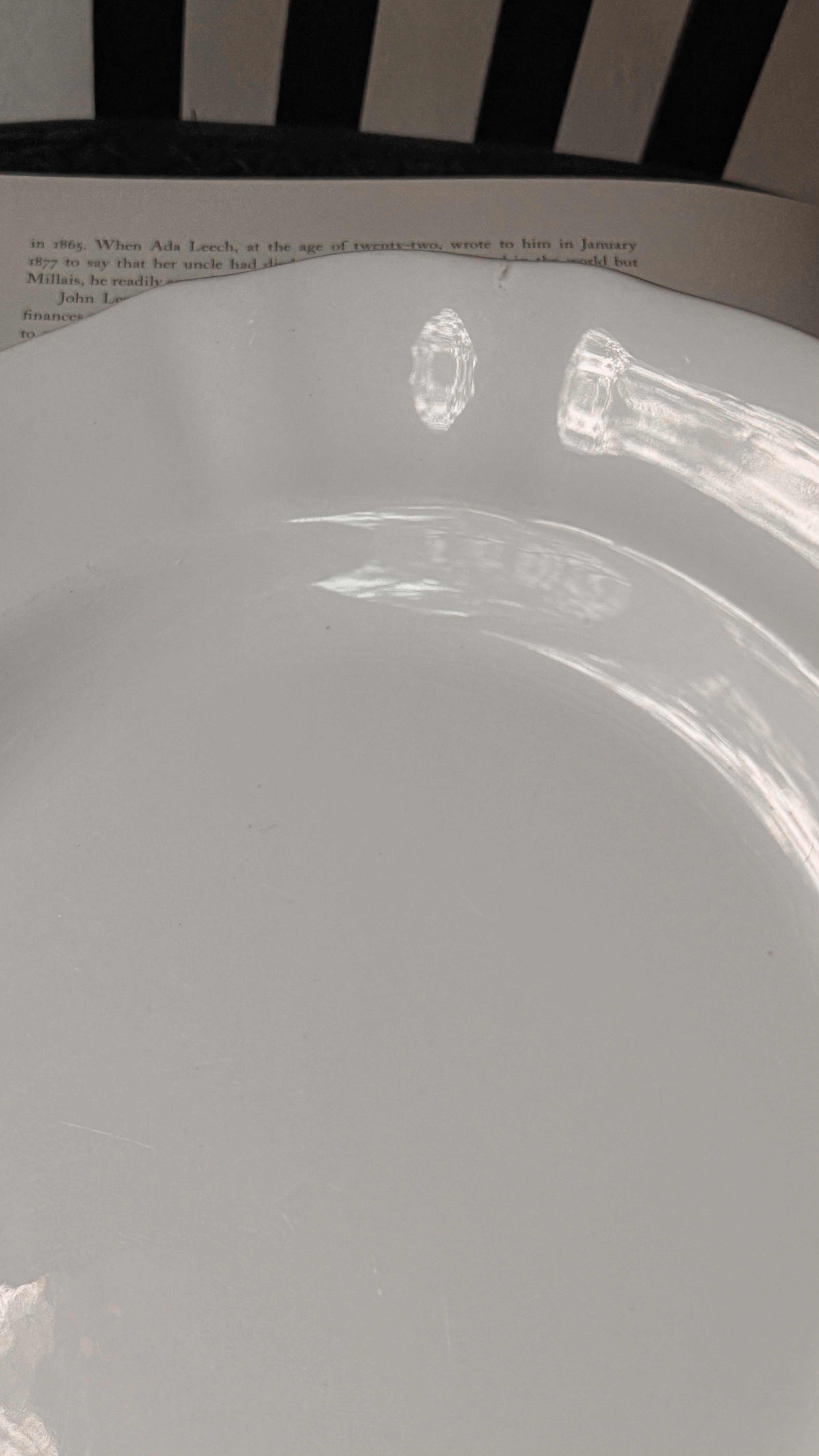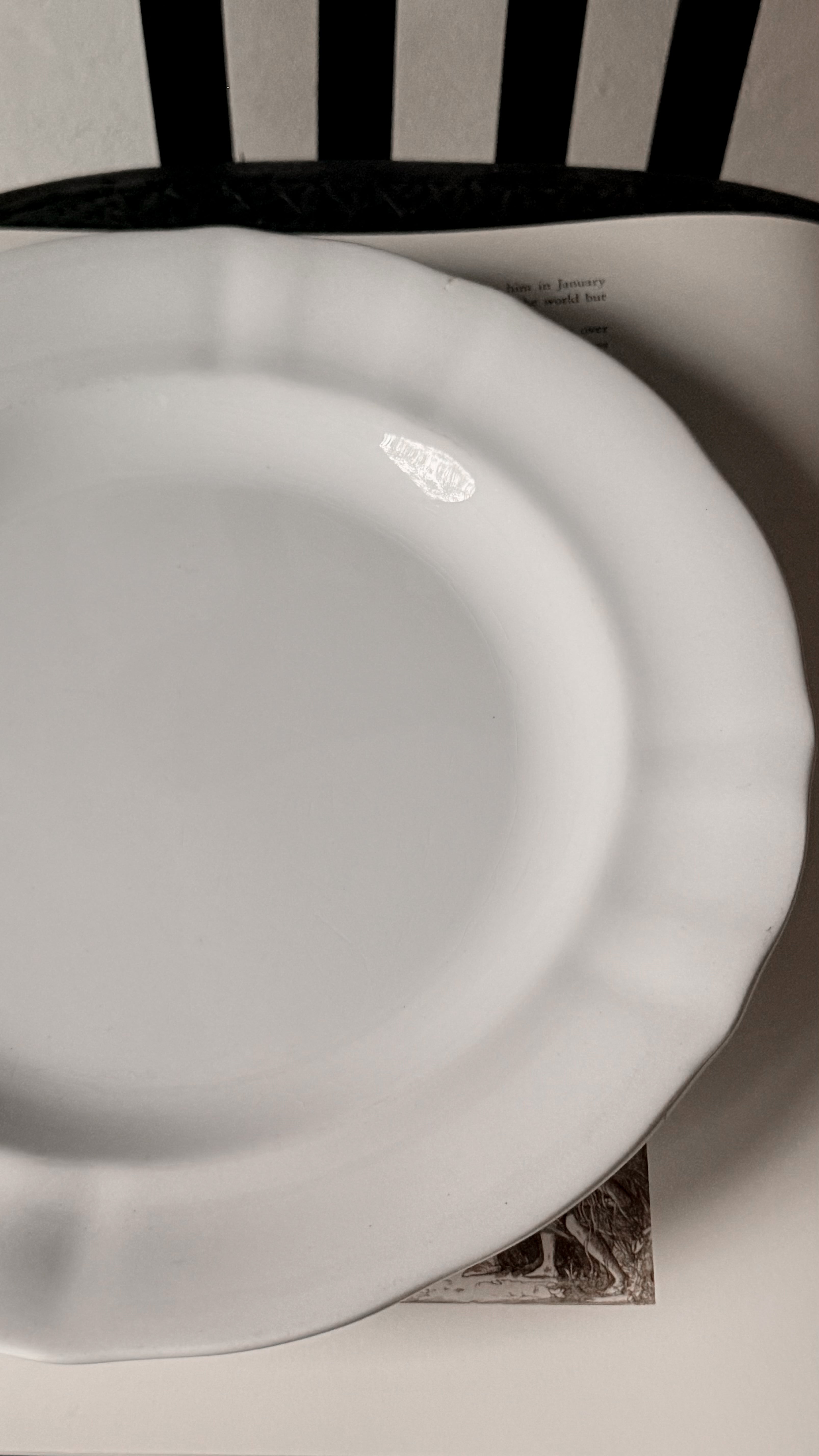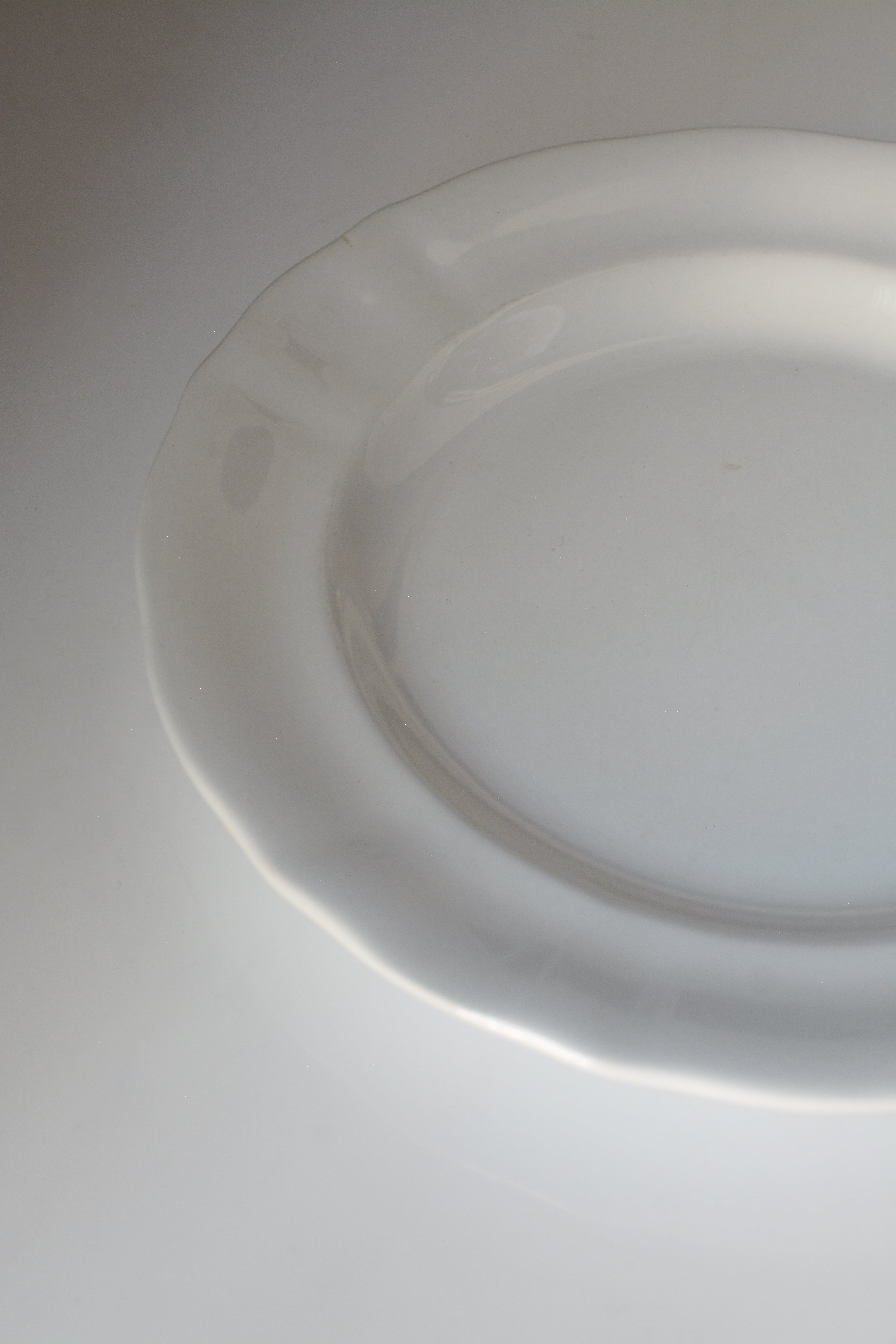 19世紀末、オランダ・マーストリヒトのプレート。やわらかな縁の揺らぎは、光を受けて淡い影を落とし、そこにひそやかな時間が流れます。長い年月を経た器には、細かな貫入や、使われてきた痕跡が残り、それは欠けではなく、記憶のようなもの。使うたびに、遠い時代の気配が、そっと寄り添う一枚です。