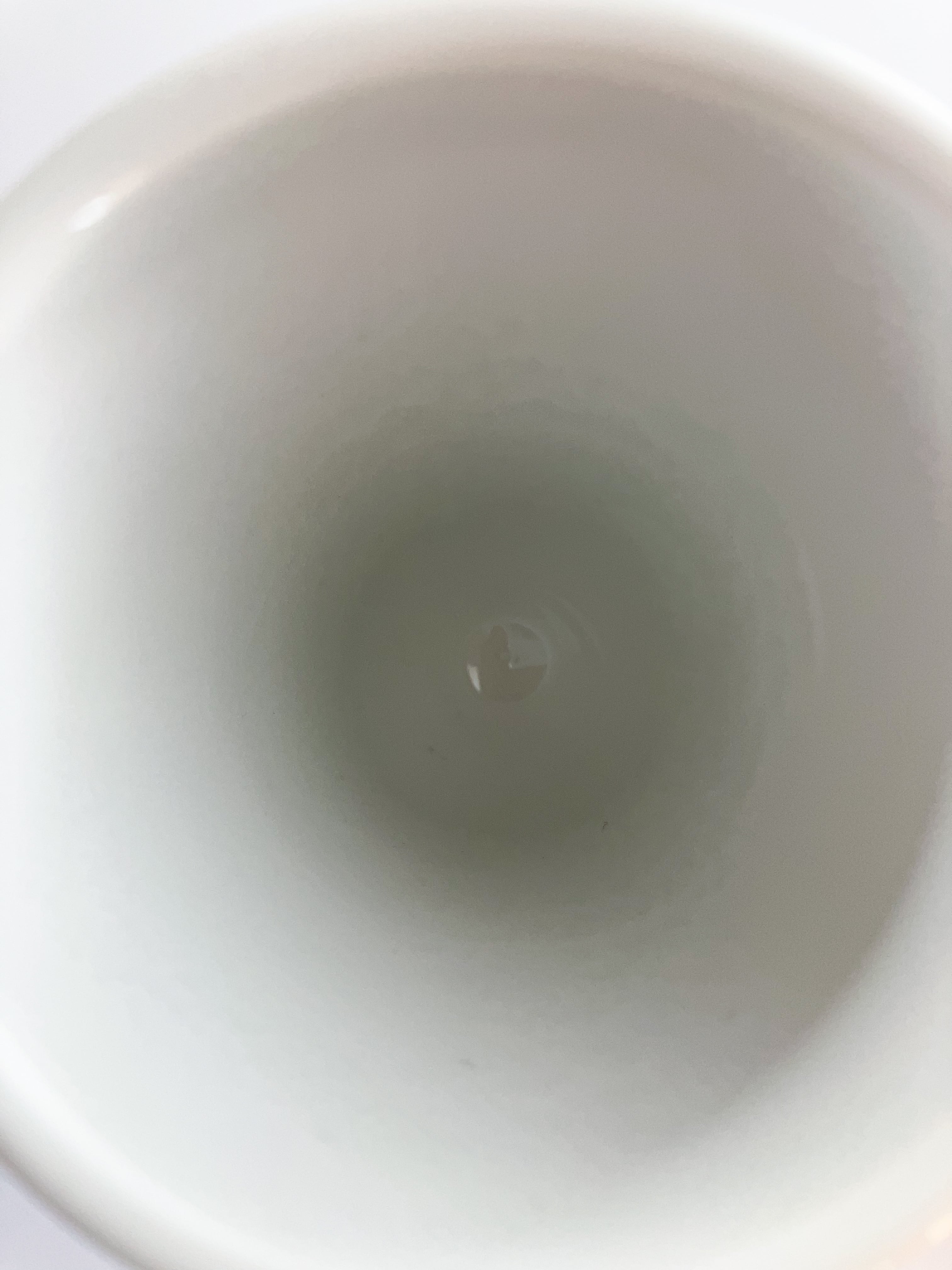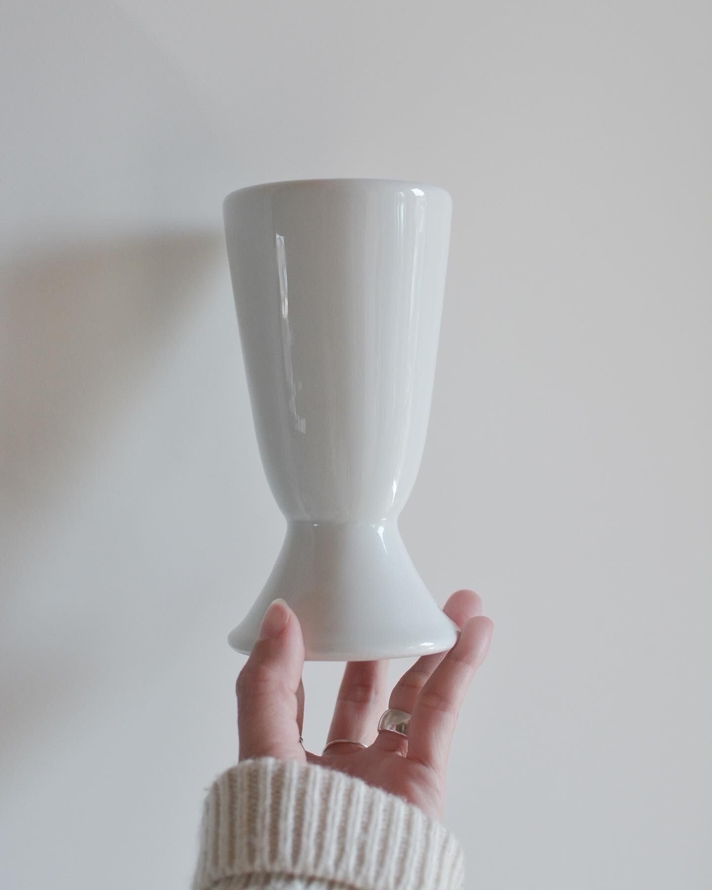 ぷっくりとした厚みが可愛い白磁のカップ。カトラリー入れや、一輪挿し等にも◎小傷等ございますが、ヴィンテージとしては比較的綺麗な状態です。