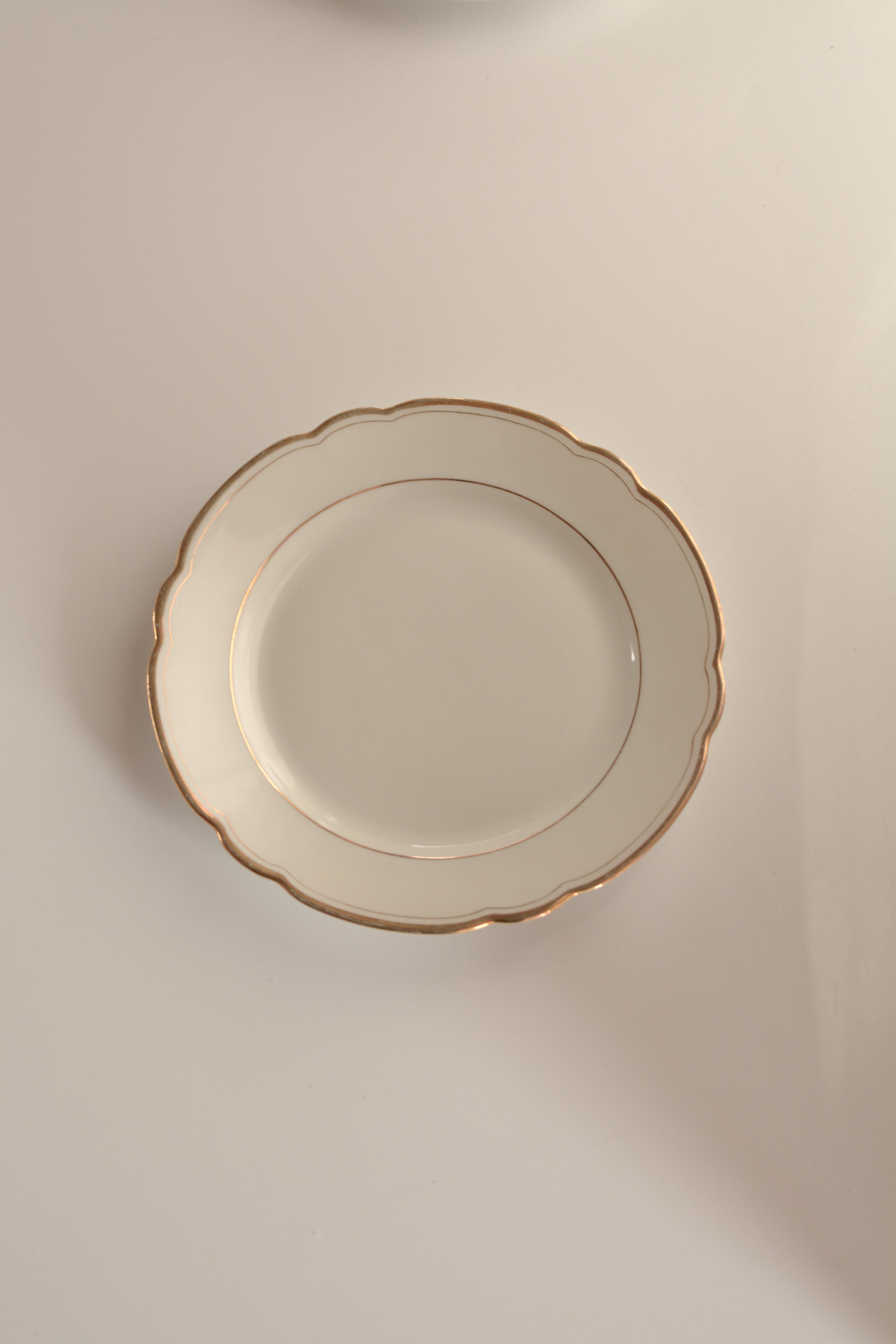 シンプルで普遍的な美しさのアンティークプレート。ケーキやパン皿としても良いサイズでパフェ皿などにも◎金彩の輝きの温もりを感じる美しい一枚です。小傷等ございますが、アンティークとしては比較的良い状態です。